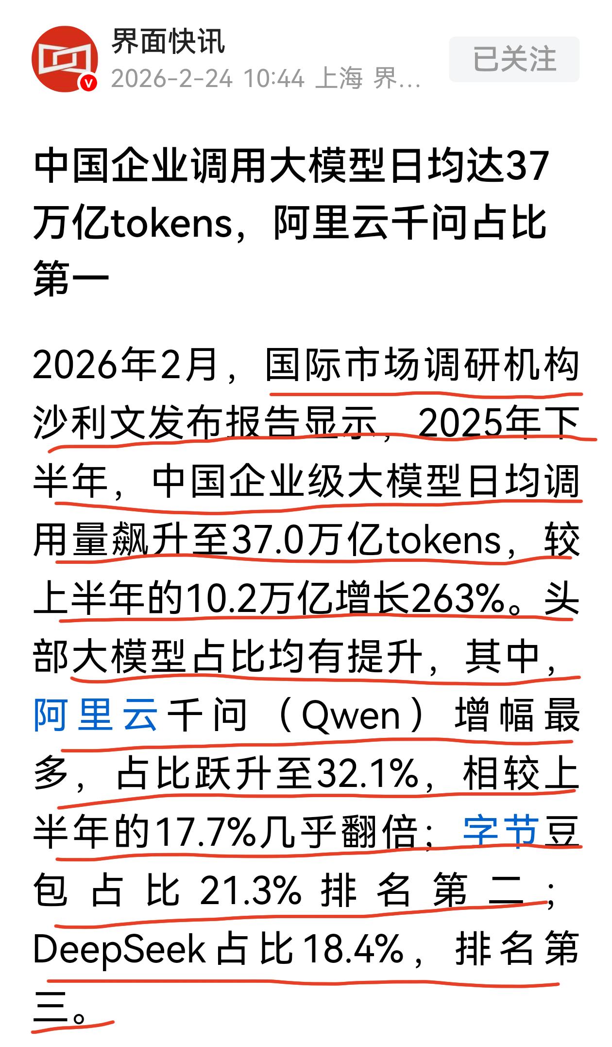 AI投资路径越来越清晰,那就是跟着 token 量走,每一个token消耗量,意味着模型的调用,代表着用户真金白银的付费。token为王,token出海叙事正在升温,AI的投资围绕token展开,才能分享AI时代的红利。 token的核心要素就是模型、算力和电力。近期中国模型受到全球开发者的追捧,第三方平台OpenRouter 的最新数据显示,十大模型的总token量调用中,中国模型占了61%的份额,由此刺激港股模型企业股价大幅上涨;算力一直是市场热点,板块呈现轮动特征,由早期的GPU、CPO、PCB到现在的高端电子布、高端MLCC,空芯光纤,金刚石热沉片;电力也是算力基础设施支出的重点,变压器、固态变压器,燃气轮机,燃料电池供不应求,也是token消耗量的重要受益者。 AI是长期题材,不要过早断言行情结束,但选好一个赛道后,关键就在于买点和买点,要保持耐心,逢调整时布局,不赚做后一个铜板,而不是追涨杀跌,敬畏市场才能在市场中获益。