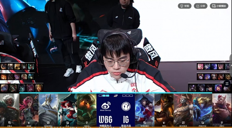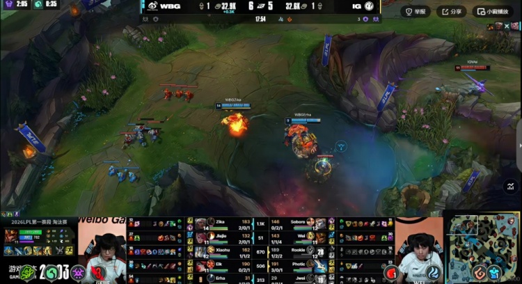 WBG:上单Zika、打野Jiejie、中单Xiaohu、下路Elk、辅助Erha