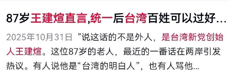 台独只有死路!王建煊直言:统一才是台湾真正的救赎 新党创始人王建煊发出振聋发