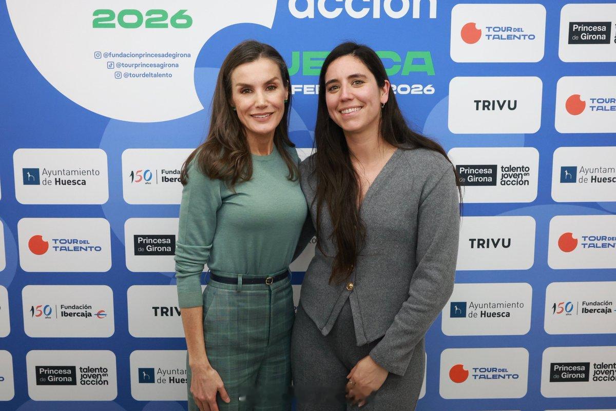2.24 西班牙王后莱蒂齐亚出席赫罗纳公主基金会相关活动,上衣来自Falconeri,裤子来自MIRTO,不多见她穿一身绿松色