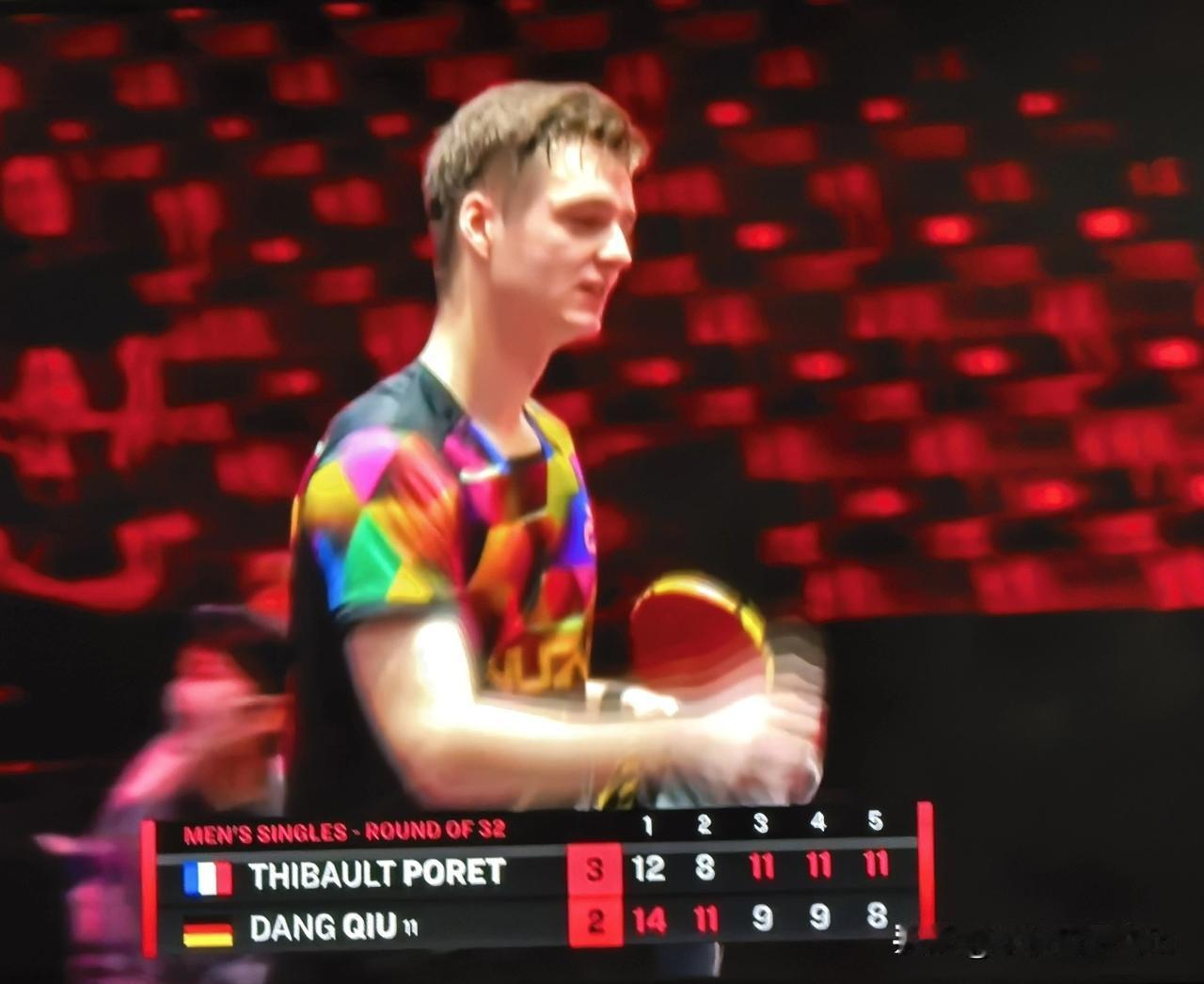 这个穿花衣服的法国小伙儿摔拍子扔球发球违例,脾气暴躁球风凶狠,一㸔就是和A勒布伦一个派系的。两次被裁判判罚,却斗志不减屢败屢战。在大比分0:2落后的情况下,逆转打平。决胜局的最后关头,凭全场唯一的一个擦边球终结了比赛。既有运气成分,也是拼搏的结果 邱党痛失好局,被一个擦边球要了“命”,回去要好好和樊振东讨讨教。