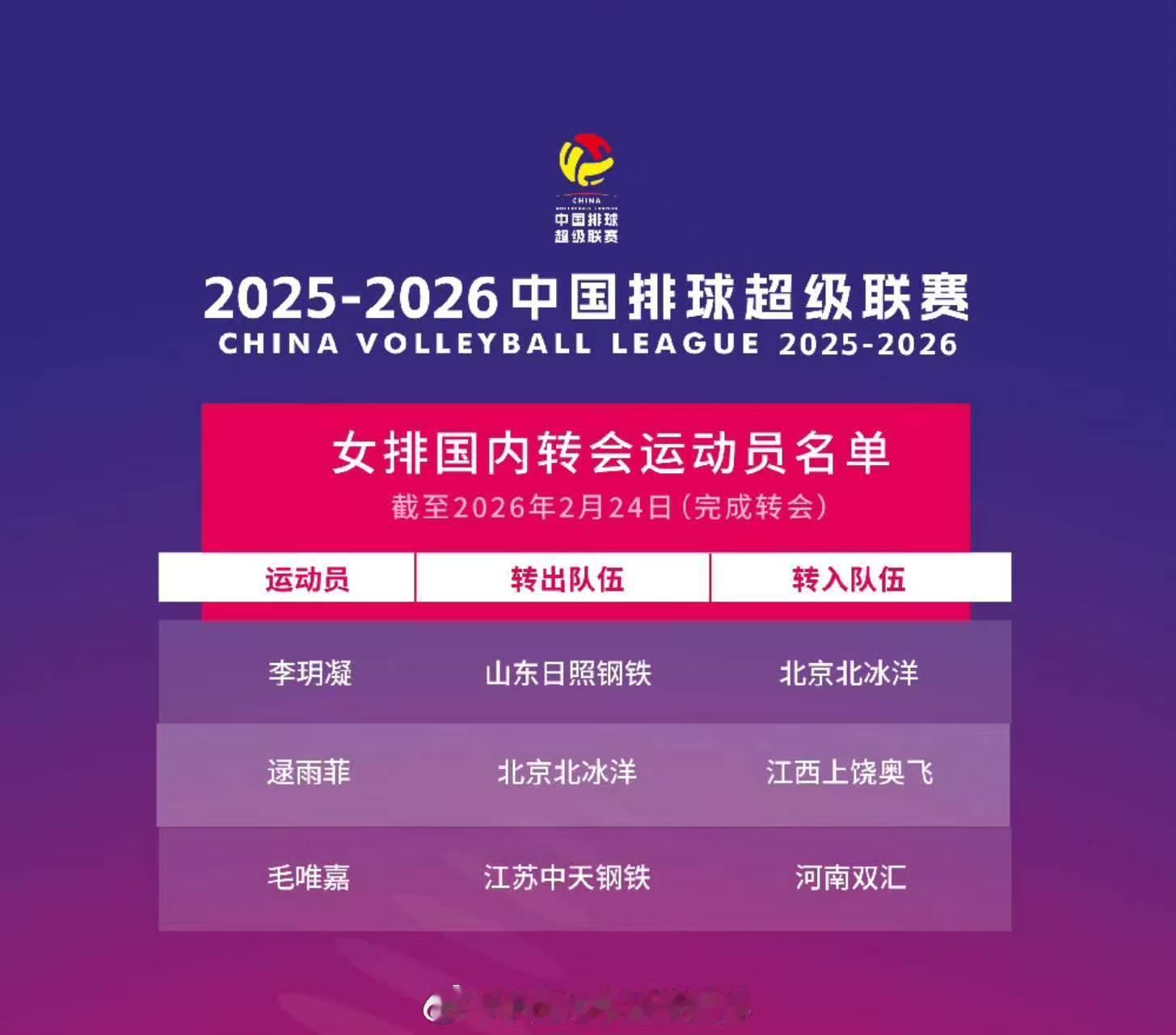 ❤关于女排超的几笔二次转会:▲李玥凝06/184:参加了24年u20亚锦赛,在山东替补二传是周司玉,李打不上球。▲范加克95/193:最近一次入选德国国家队应该是22年世联赛,主攻接应都可以打,本赛季在意甲佩鲁贾打接应,扣球成功率只有28%,实力很一般。▲马尔科维奇97/187:斯洛文尼亚,本赛季佩鲁贾打接应的扣球成功率37%,还算可以这对江西队来说是个不错的选择。▲拉季利奇97/187:塞尔维亚,曾经两度获得塞尔维亚杯最佳主攻,以及最佳发球,深圳主攻线提升。(逯离开北京是不是证明董禹含伤病恢复较好。辽宁女排这个土耳其外援之前说过了,年纪大,也没什么突出的。毛去河南,河南的副攻感觉并不是十分缺,但确有频繁换人情况,江苏副攻太多了倒是。)中国女排中国女排超级联赛