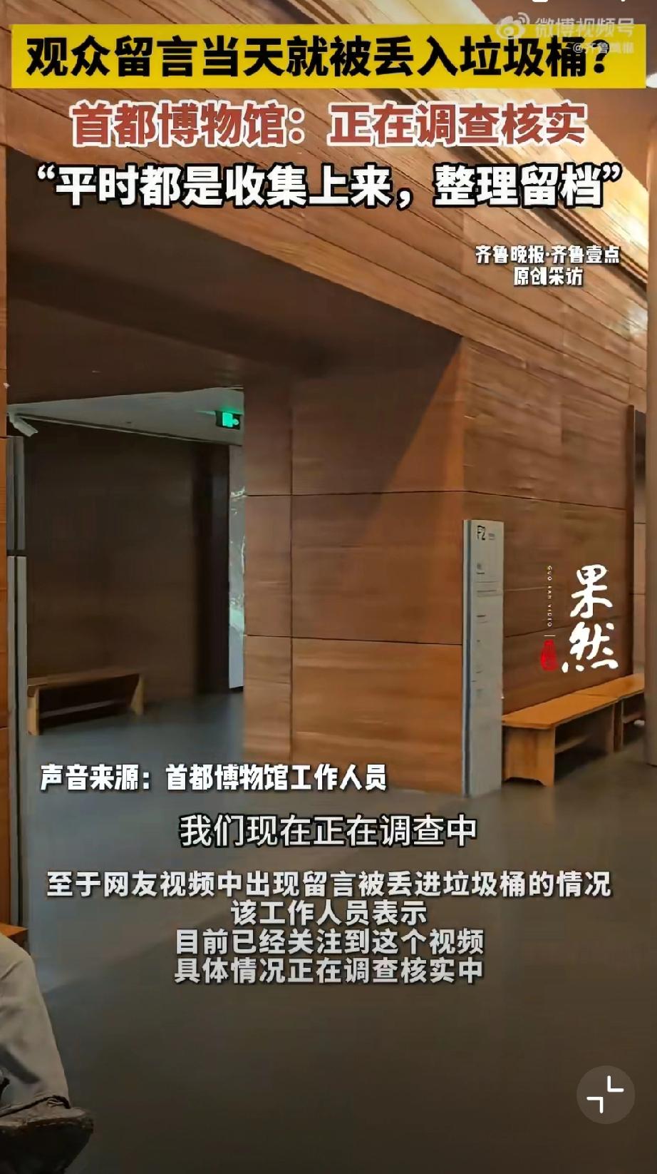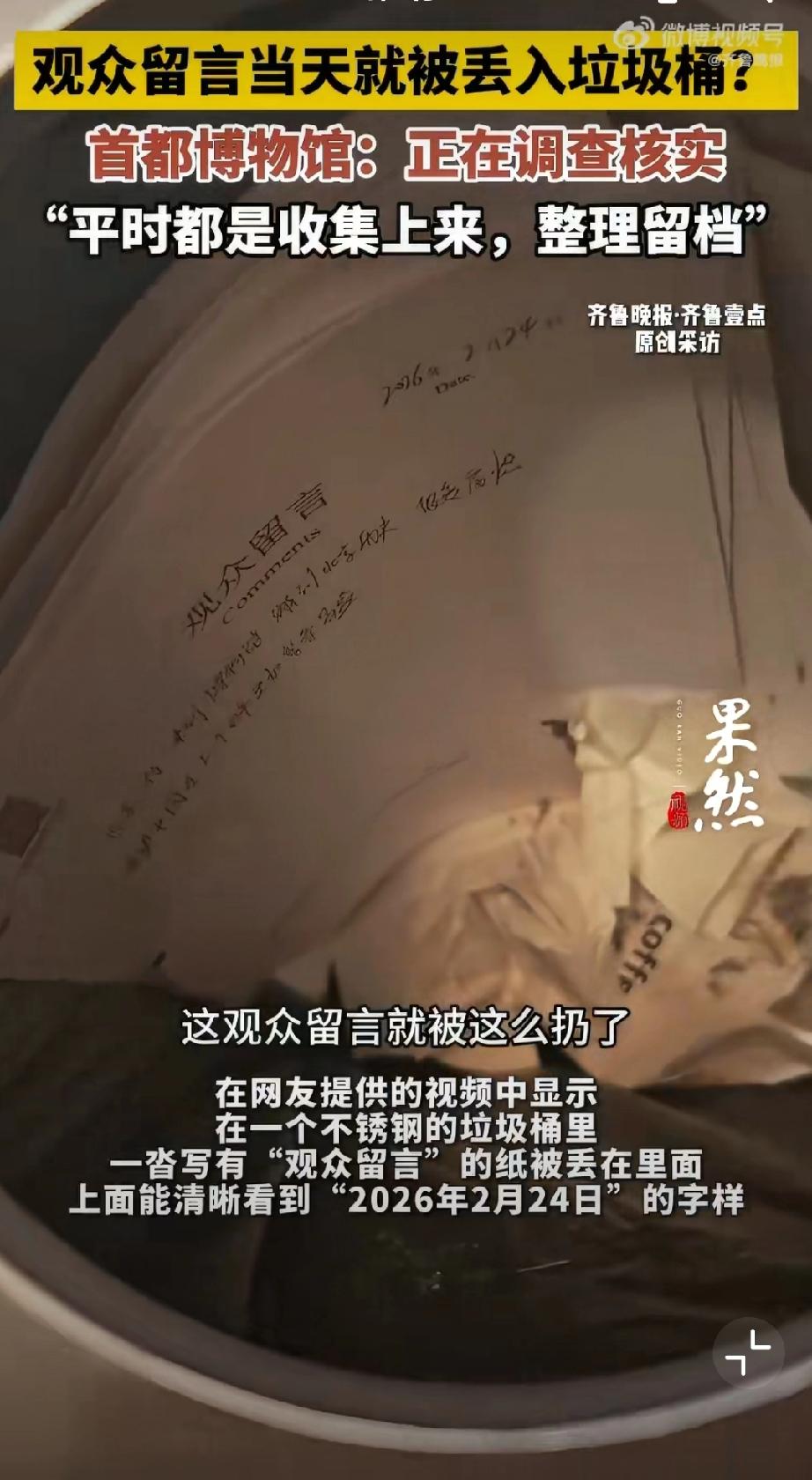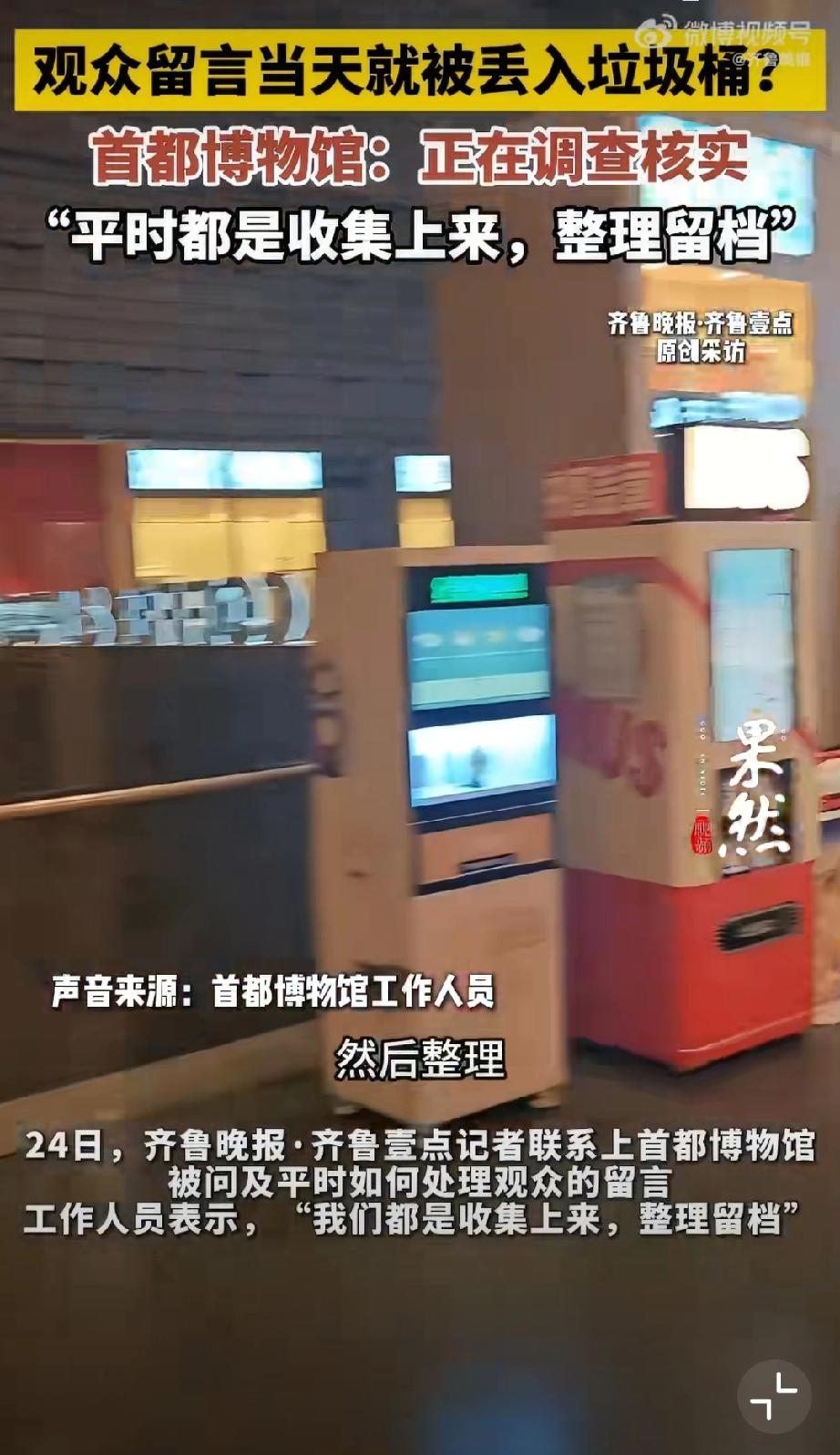 2月24日,网友反映:首都博物馆把观众的留言当垃圾给丢了(来源:远山)博物馆困局