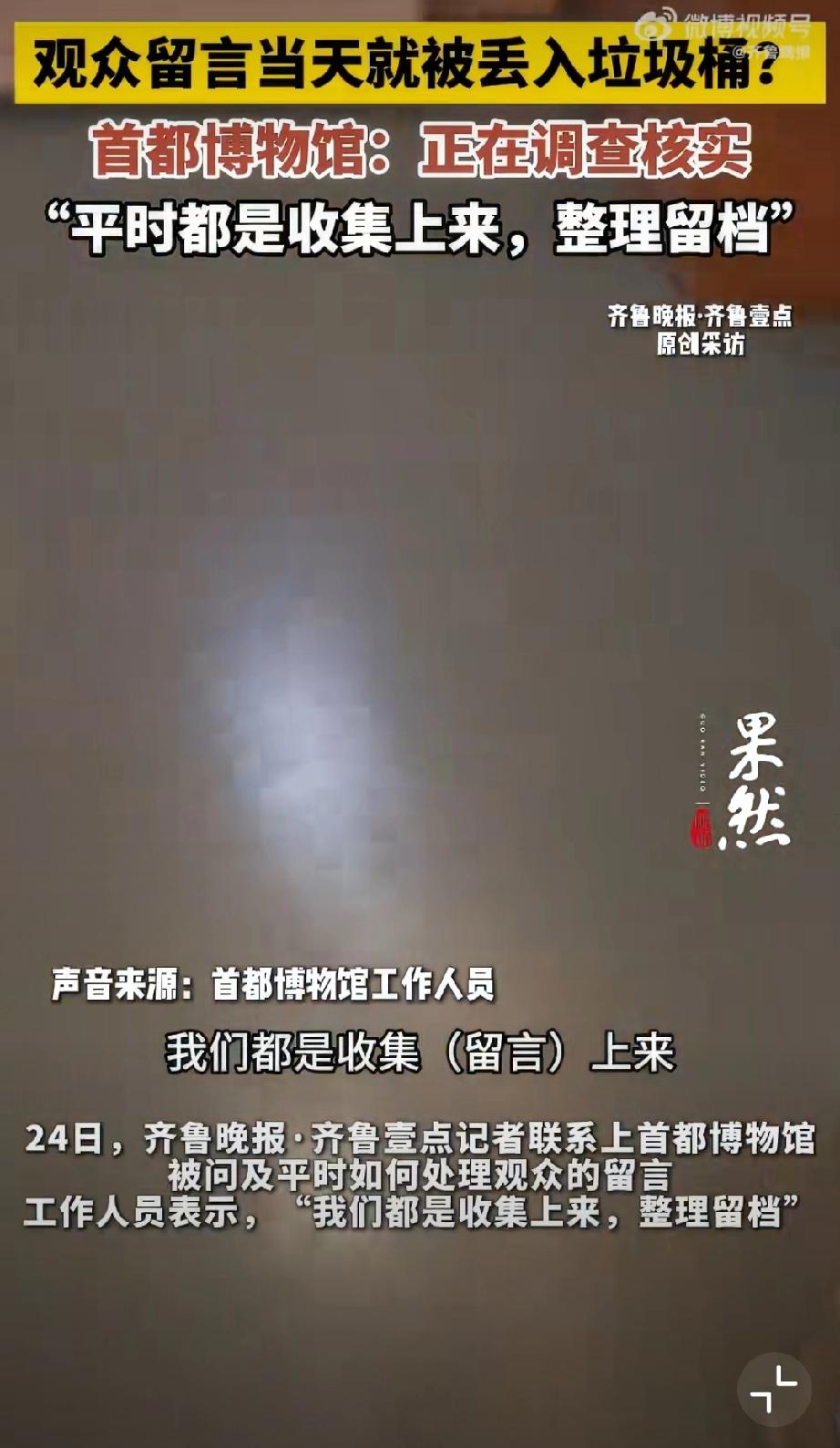 2月24日,网友反映:首都博物馆把观众的留言当垃圾给丢了(来源:远山)博物馆困局 北京展厅博物馆 首都博物馆馆长