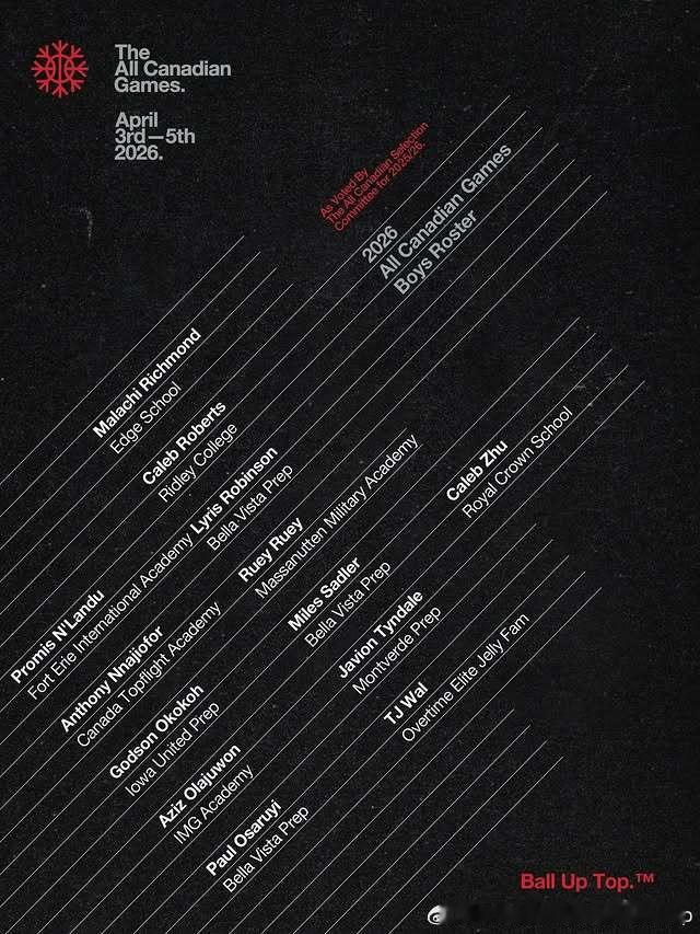 2026届华裔中锋朱勃翰(2007-208cm-C)入选加拿大高中全明星赛NCA