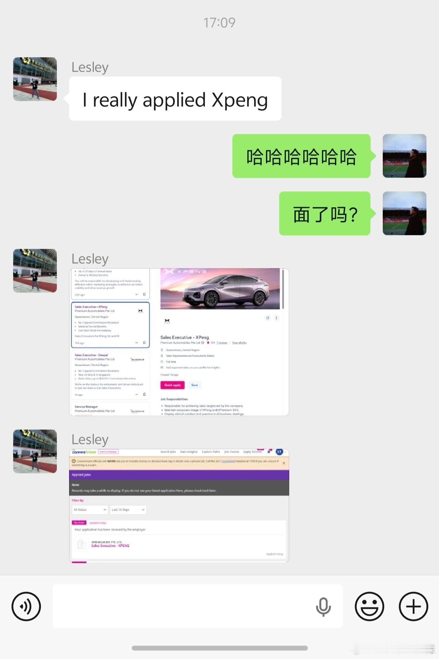 我笑了我表弟他说已经递了CV给新加坡小鹏了小鹏汽车