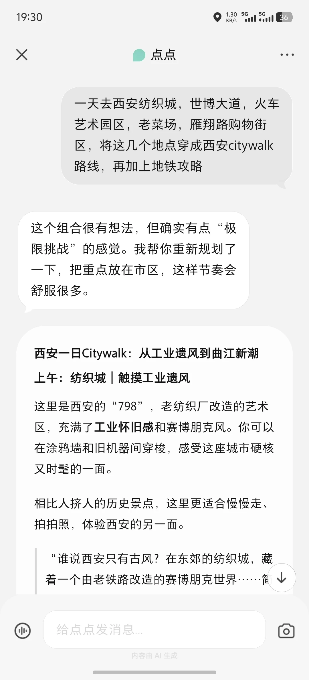 去西安玩拒绝人挤人!问点点做的文艺烟火线攻略,全程地铁换乘不绕路,工业风、欧式景、市井气、潮玩街一次逛够✨ 🚇地铁直达 ▫️火车艺术园区:1号线半坡站C口,步行5分钟 ▫️世博大道:3号线香湖湾站A2口,步行8分钟 ▫️老菜场:4号线和平门站D口,步行8分钟 ▫️雁翔路购物街区:5号线黄渠头站/8号线缪家寨站,步行即达 🌿一日路线 上午火车艺术园拍复古工业风;午后世博大道逛罗曼小镇、看长安塔;傍晚老菜场天台瞰老城、吃小吃;夜晚雁翔路潮玩街区收尾,夜景超绝。 免费好拍、节奏舒服,地铁直达不费腿,收藏直接冲![自拍R][自拍R]