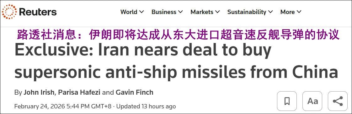 据路透社报道,伊朗正谋求进口东大的CM-302型超音速反舰导弹!