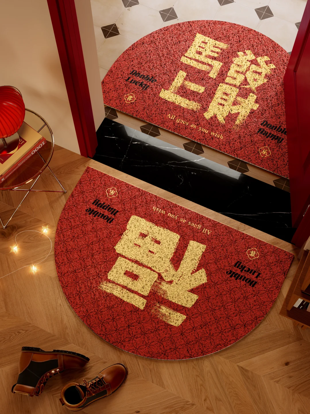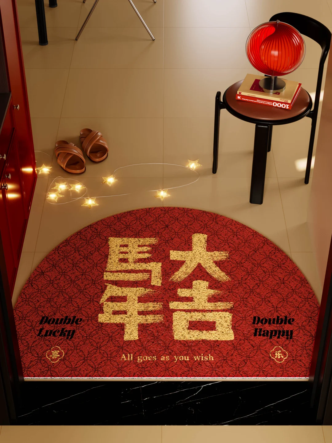正红底上写着新年福语 中国传统红搭配金色字体 一进门就觉着好运满满 地垫是丝圈材质 踩上去软软的 吸灰也不错 放在玄关处 开门就迎接一整年的福气美好 -