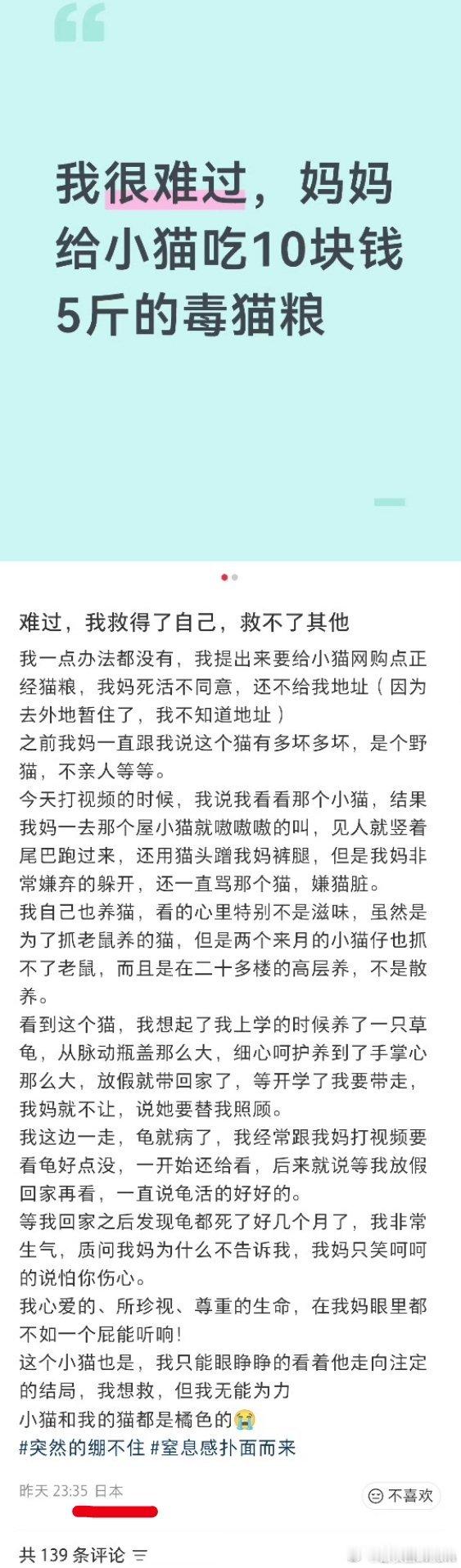万万没想到!江苏一个女的出差,临走前给猫碗倒满了猫粮,本来打算三天就回来,结果项