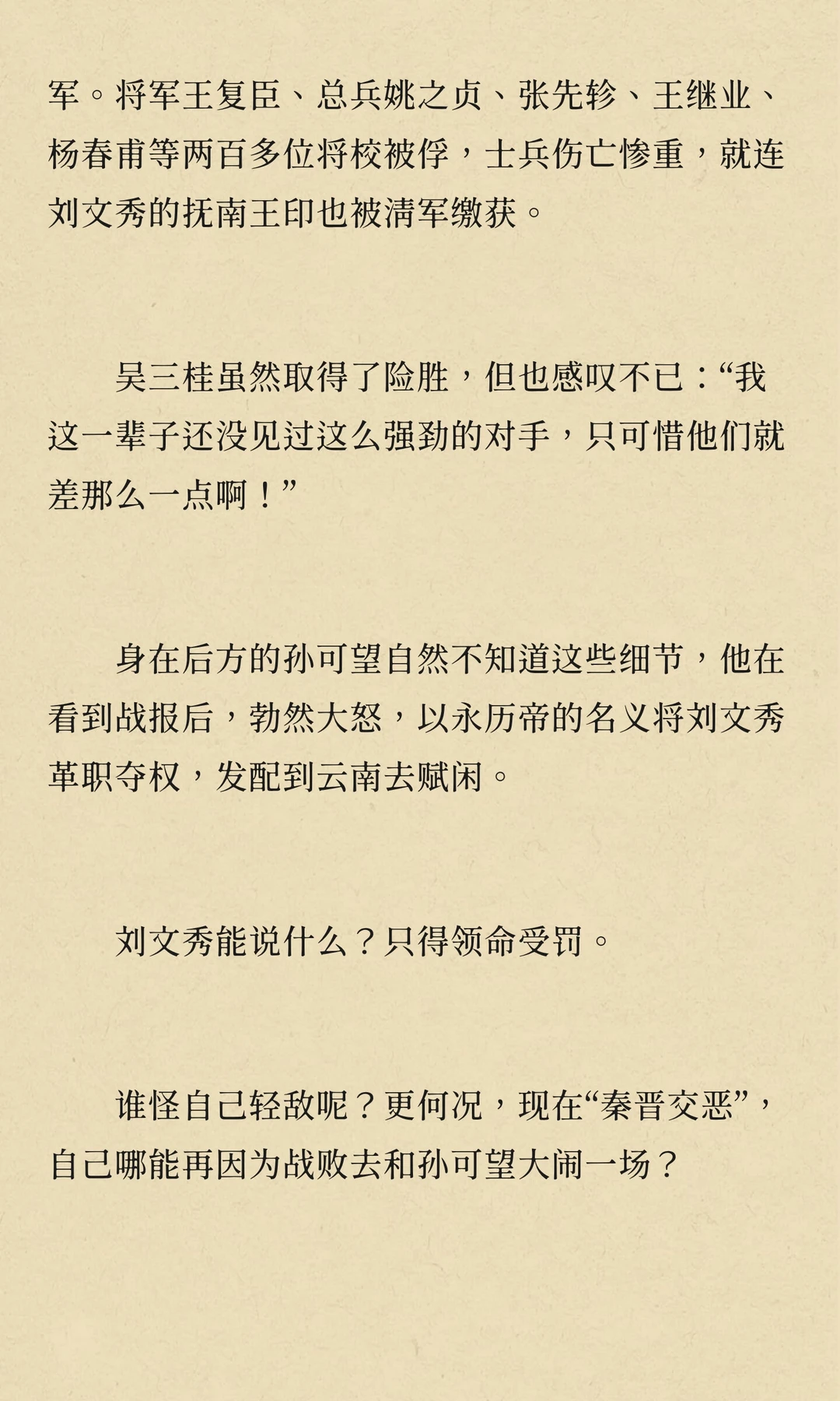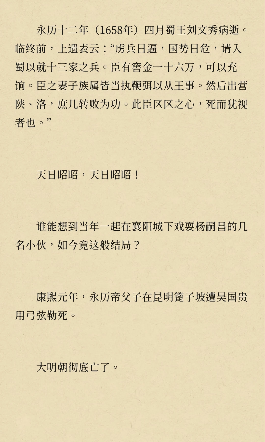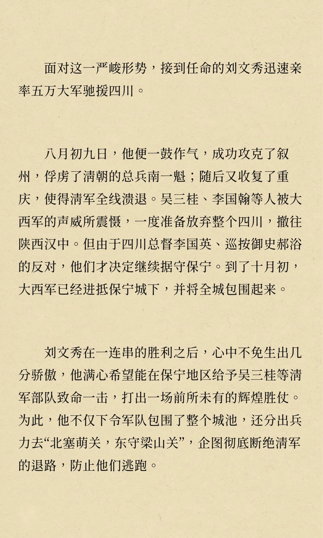 刘文秀作为大西军将领,曾与孙可望、李定国并肩作战,后因兄弟阋墙陷入内斗。他试图调和矛盾,但最终未能扭转局势。刘文秀在云南平定叛乱后,被调回四川,最终因病去世,南明永历朝廷不久后随之灭亡。