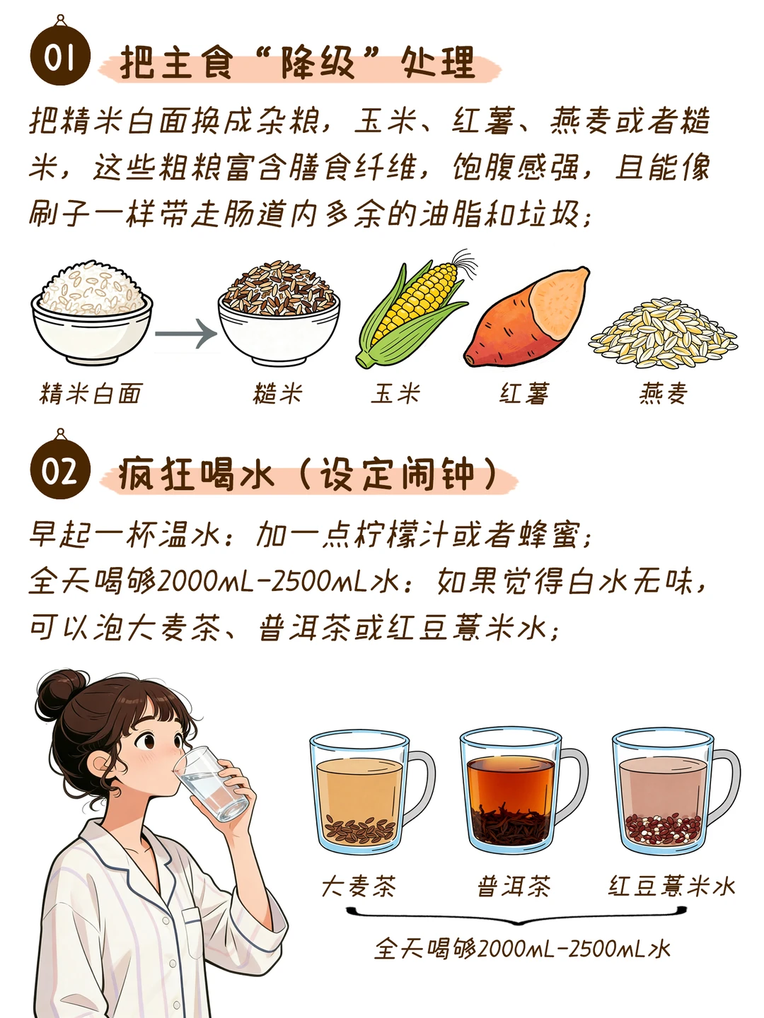 年后想要快速刮掉油腻感,恢复身体轻盈体态; 核心在于 “换”和 “动” ,而不是“饿”; 这些简单的行为: 坚持3天,你会明显感觉裤腰变松,身体不再那么沉重; 坚持一周,皮肤的油腻感和身体的倦怠感会有明显改善;