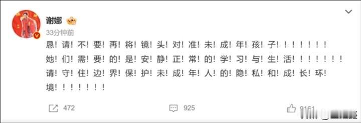 看哭了!谢娜连发68个感叹号怒斥偷拍:求你们,放过我的孩子! 这68个感叹号,字字都是泪!2月25日,谢娜因双胞胎女儿上课被狗仔全程偷拍,罕见情绪失控,在微博连发68个感叹号恳求:“恳请不要再将镜头对准未成年孩子!” “她们需要的是安静正常的学习与生活!”这哪里是明星的抱怨?分明是一位母亲被逼到绝境的本能反击。为了保护孩子,谢娜和张杰多年来从未公开孩子正脸,极力营造普通童年。可如今,连上课的路都被镜头堵死。 丈夫张杰也转发《未成年人保护法》力挺,网友更是怒骂:流量再大,也不能没了人性!孩子的童年,不该是你们的流量密码! 谢娜怒斥偷拍 保护未成年人隐私 张杰发声 信息来源: 今日头条、新浪微博、央视新闻