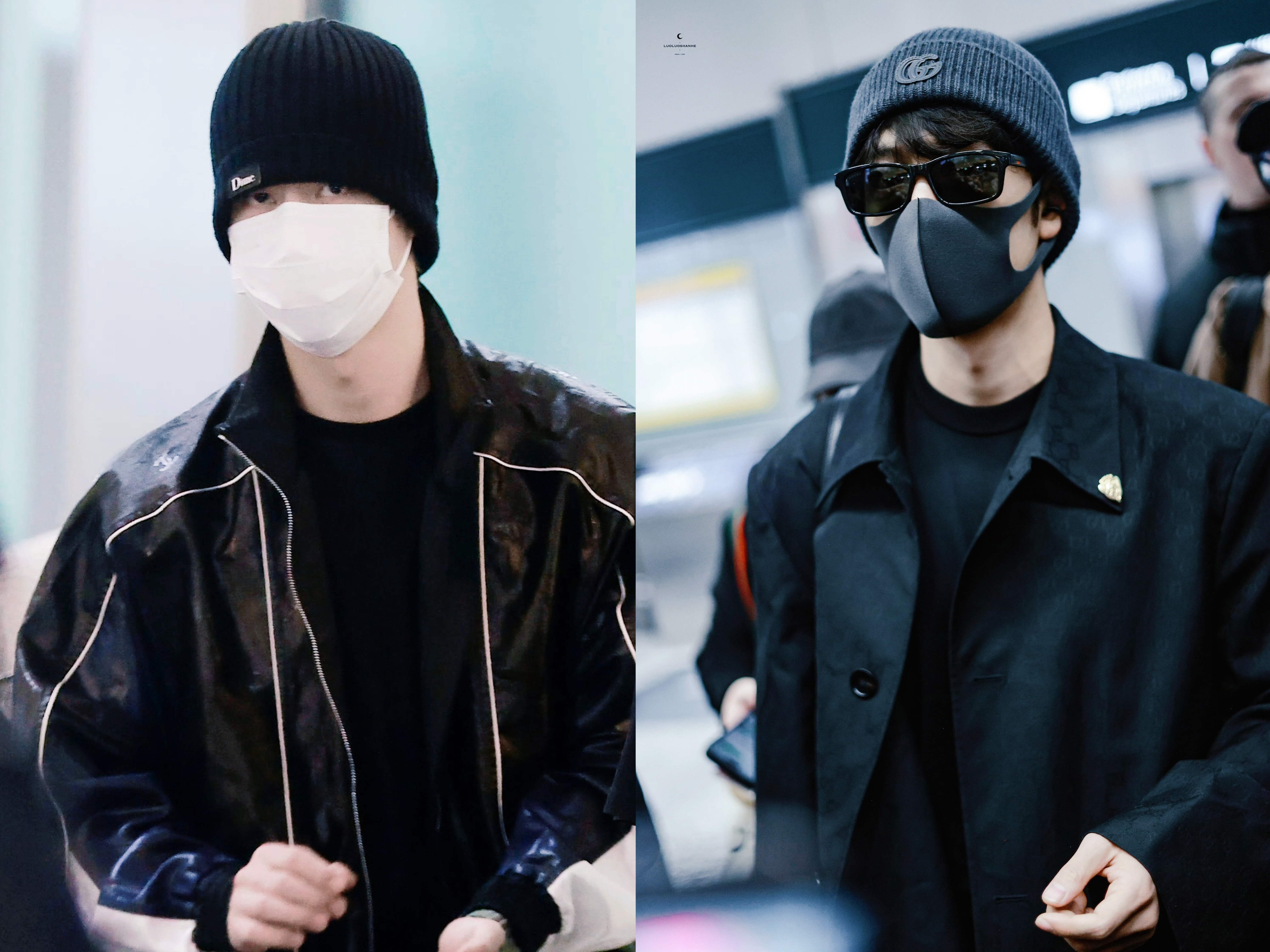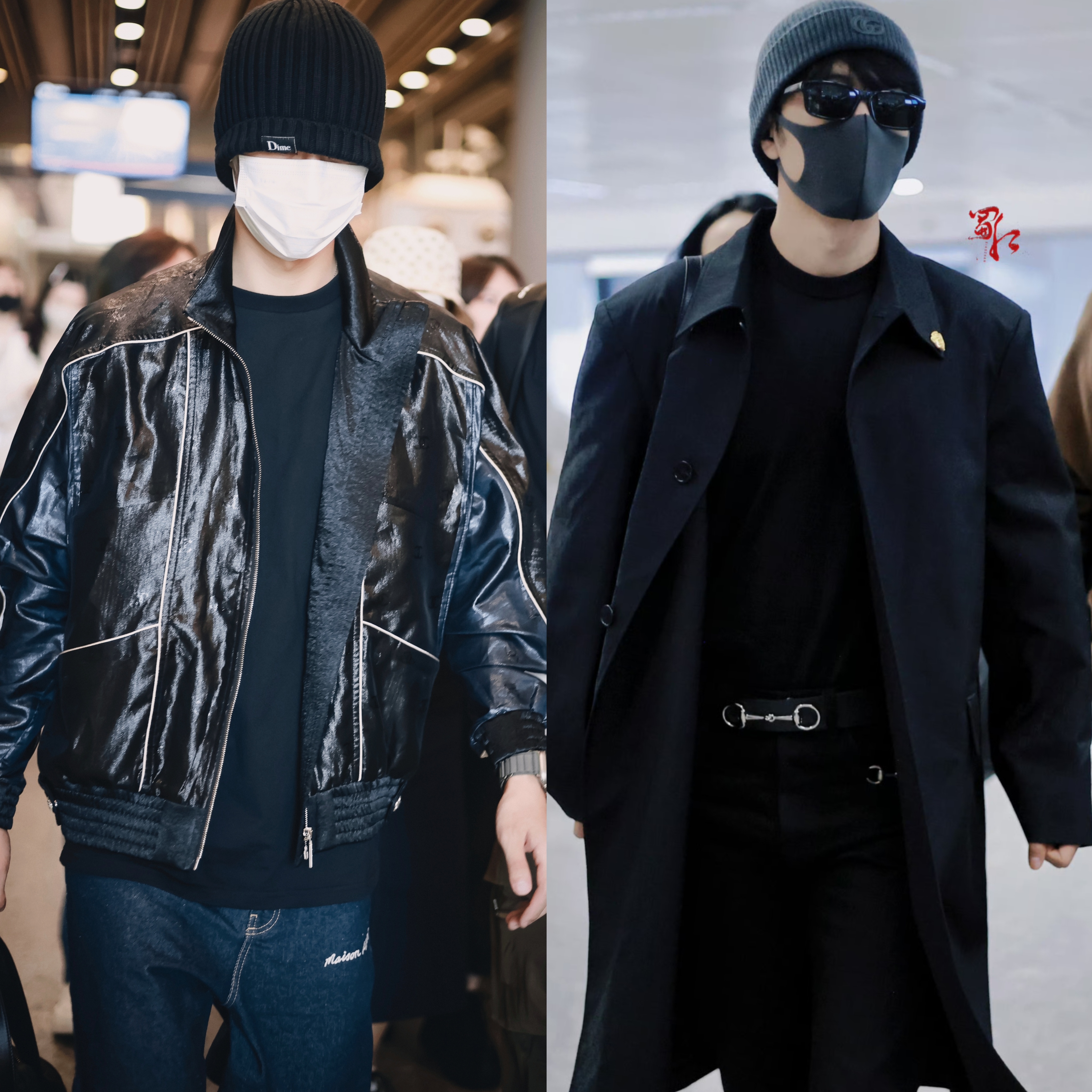 王一博肖战时装周机场图,女子酉己