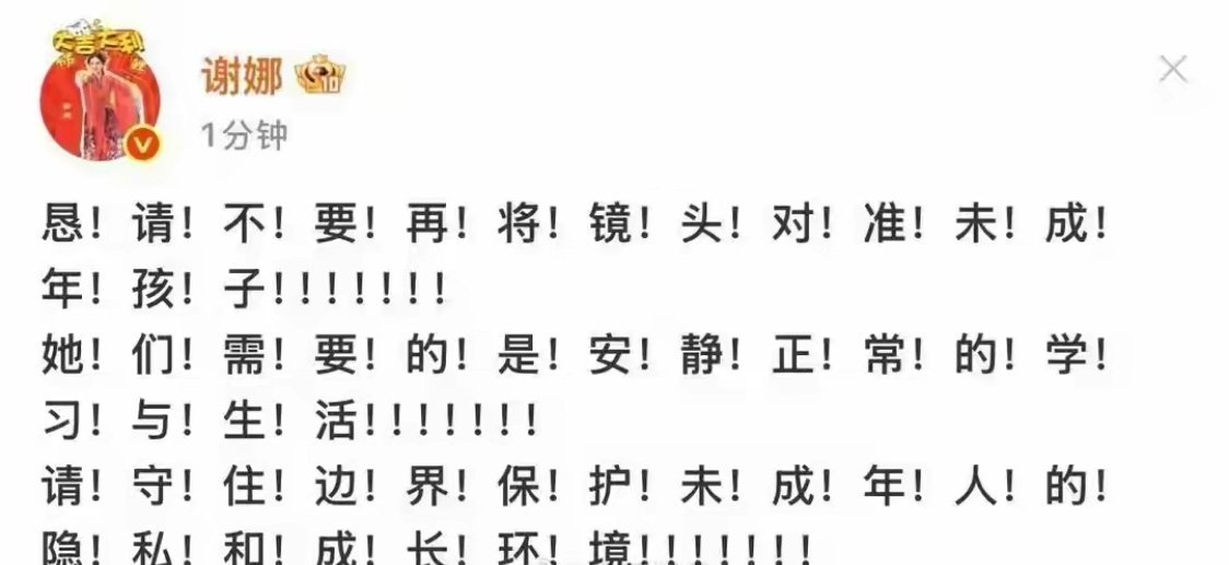 谢娜恳请不要将镜头对准孩子谢娜恳请大家别把镜头对准孩子,明星也是普通妈妈,只想守护孩子的平静童年,拒绝偷拍跟拍,尊重未成年人隐私。