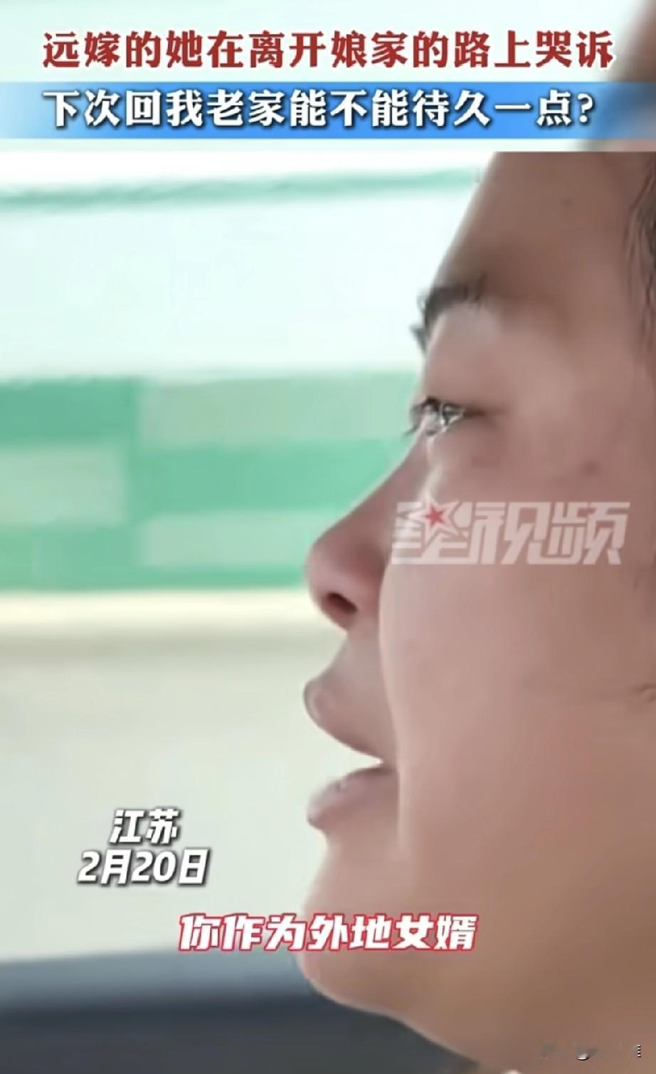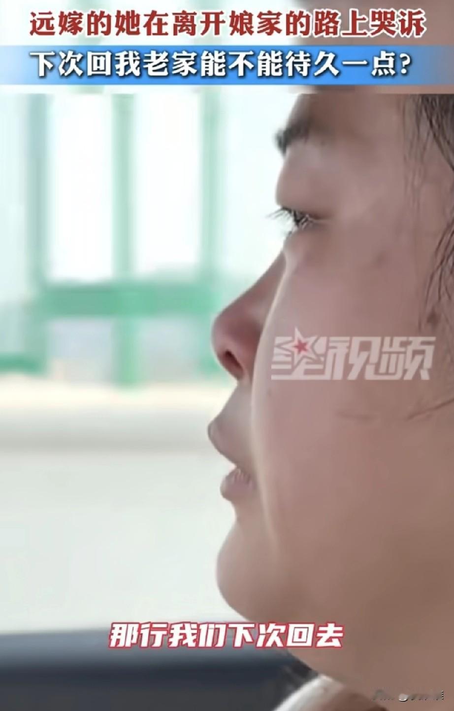 “亲情难舍!”远嫁女子回娘家过年,年后返程路上泪流满面的向丈夫哭诉:“下次回我老家过年能不能呆久一点,你作为外地女婿,来我老家这边可能不太适应,所以总想快点走,可是我远嫁外地,要好几年时间才能在自己的老家过个年,我也30几岁了,我也想父母,想兄弟姐妹,想和他们在一起多呆几天。”丈夫听到妻子的哭诉,似乎也理解了她的心情,坚定的答应了老婆的请求,说下次回来过年一定多陪老婆多呆几天! 我觉得这女子说的没毛病,夫妻互相理解,适当的时候能直接说出心里话来沟通交流,这种状态很好!