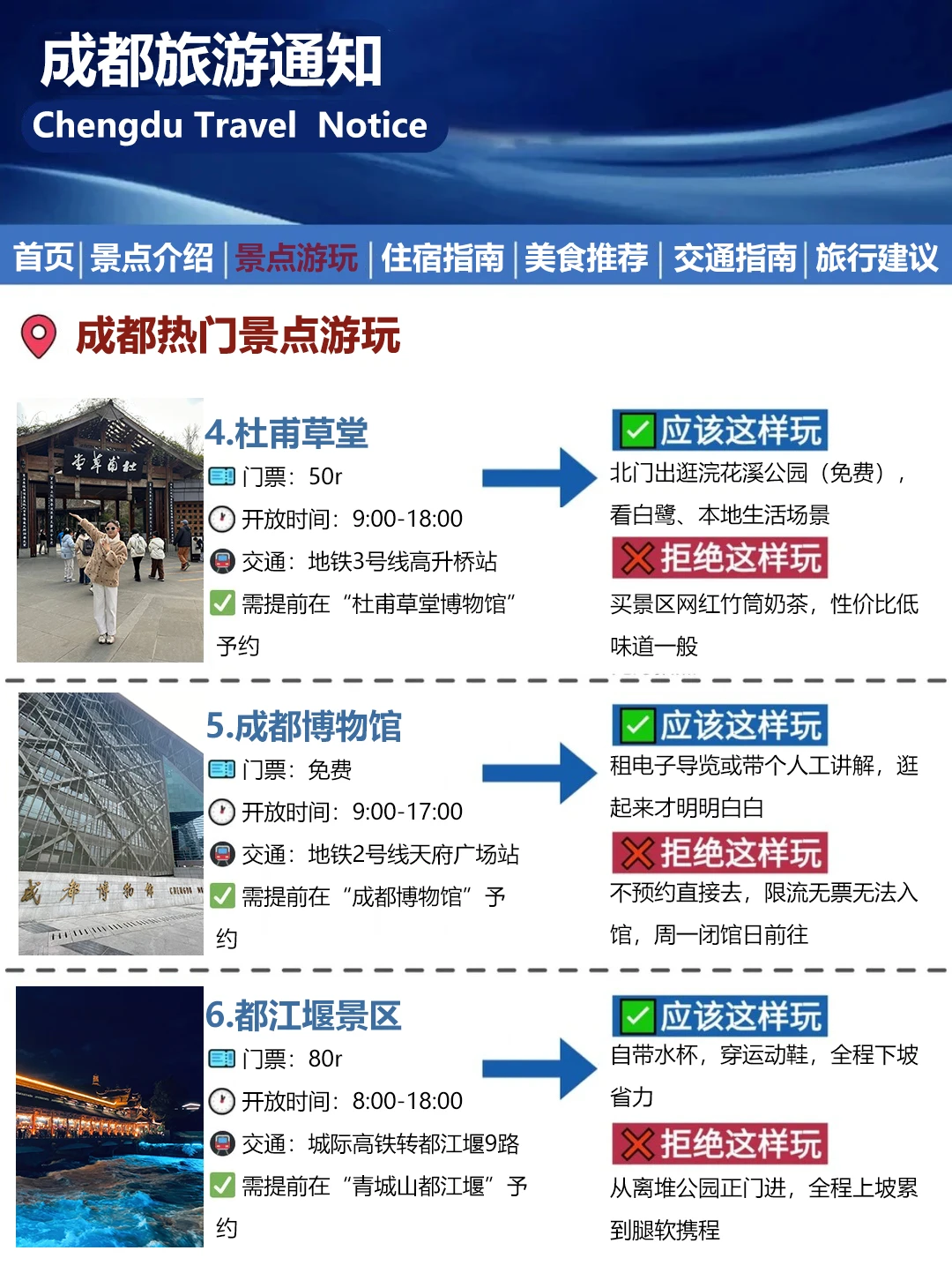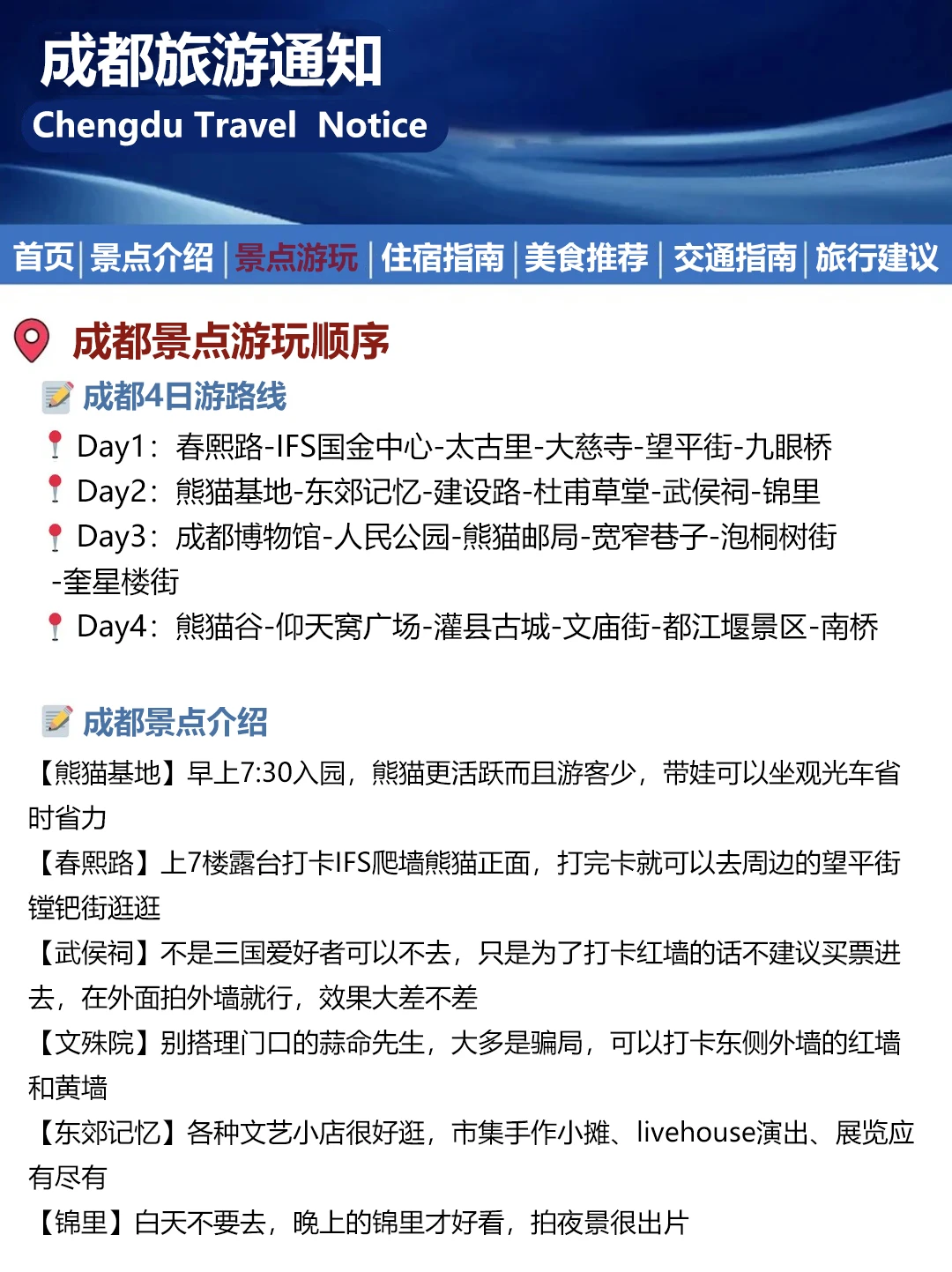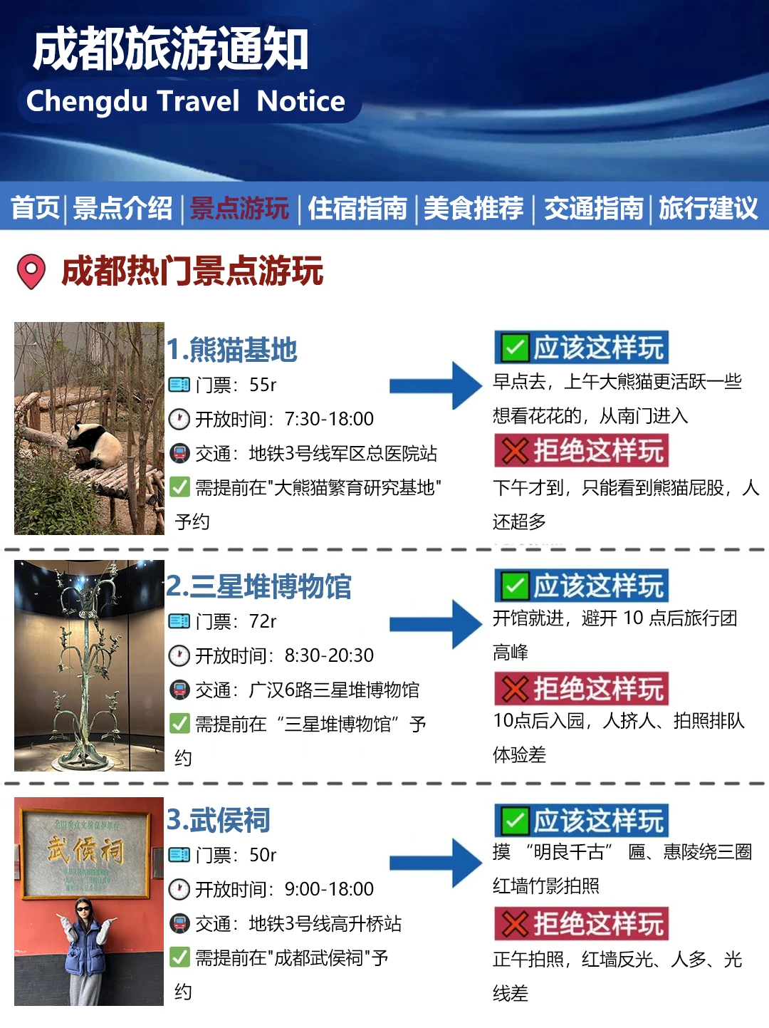 刚刷到成都官方最新旅游通知,还好提前看到了!👍景区预约、开放时段、限流政策都有调整,准备去成都的朋友一定要先看通知再安排行程,避免白跑一趟~✊