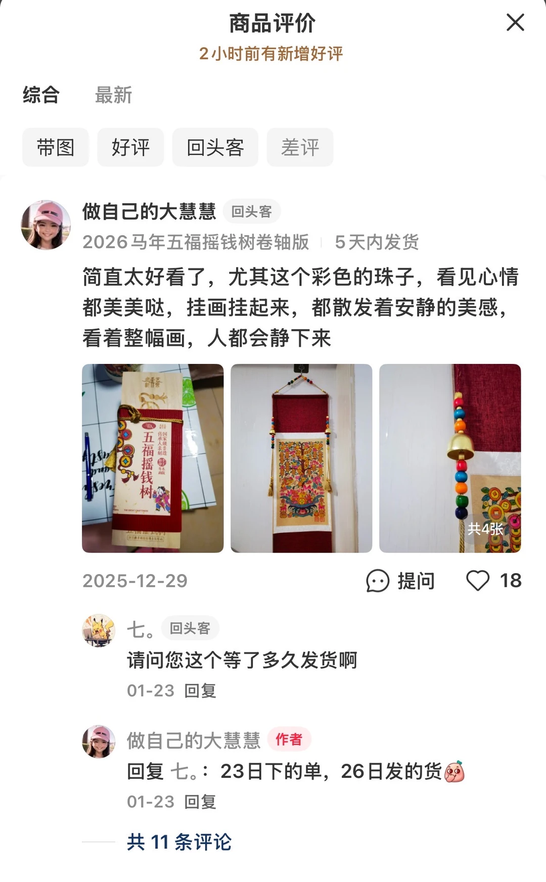 这幅五福摇钱树快超1w单,感谢大家!!