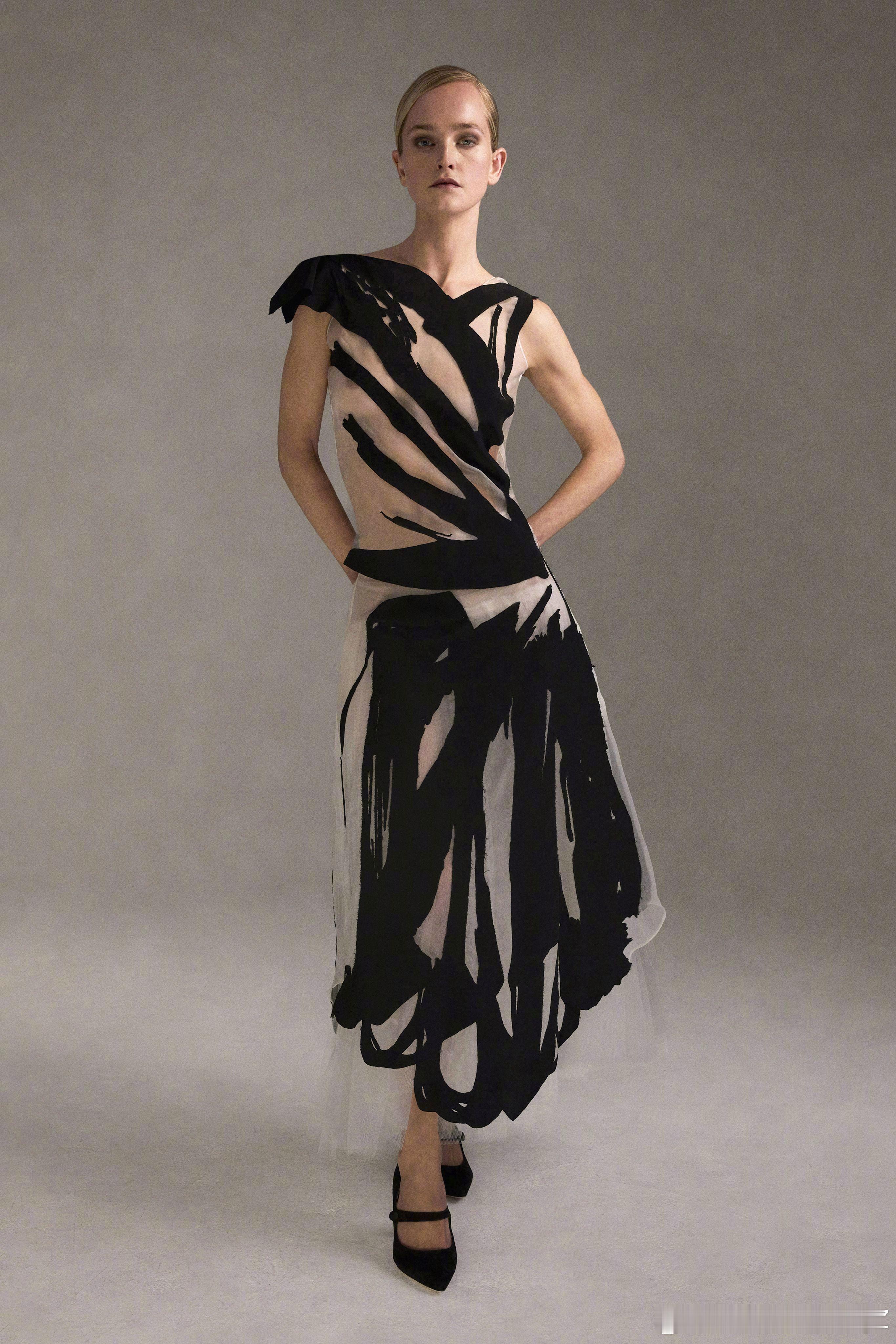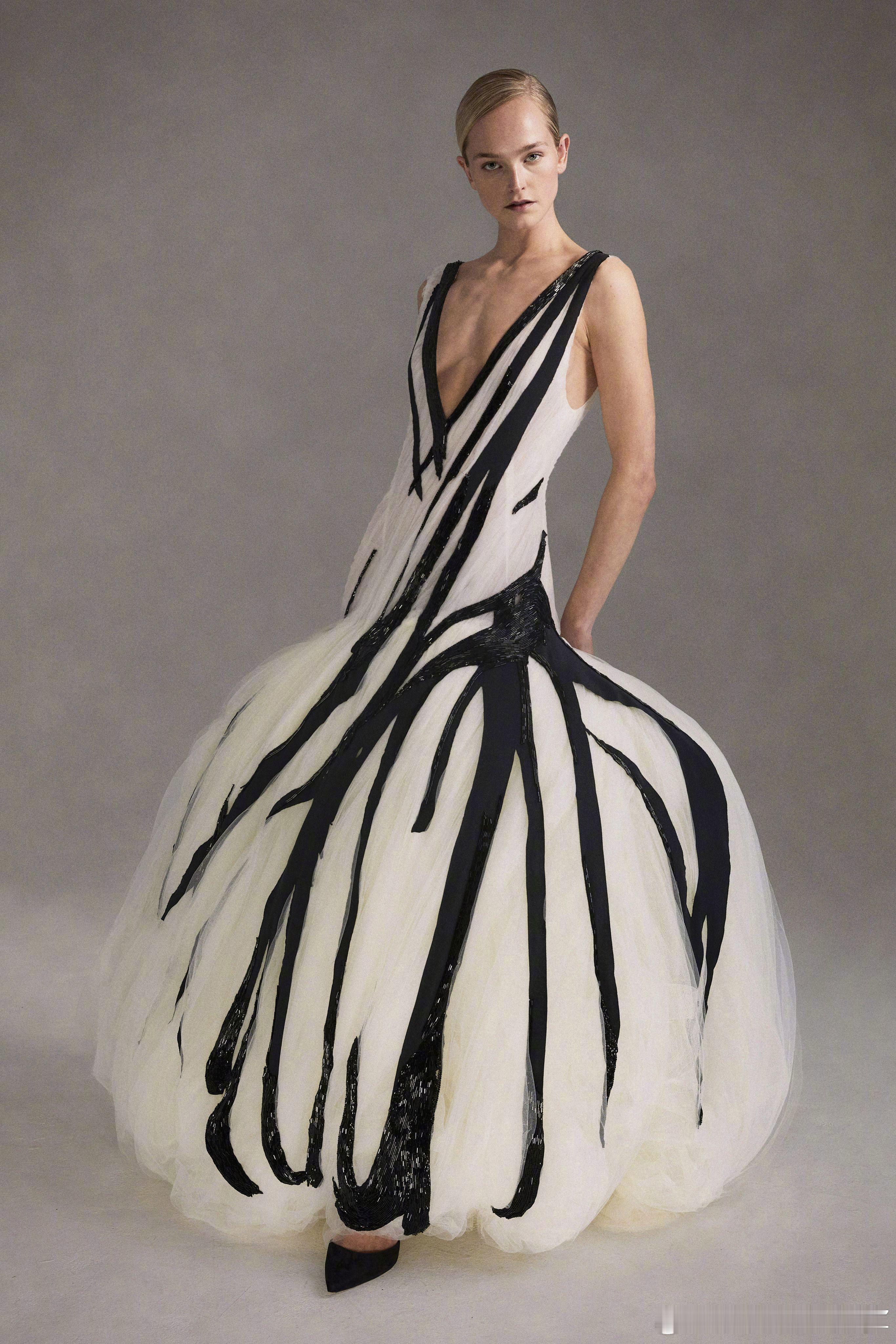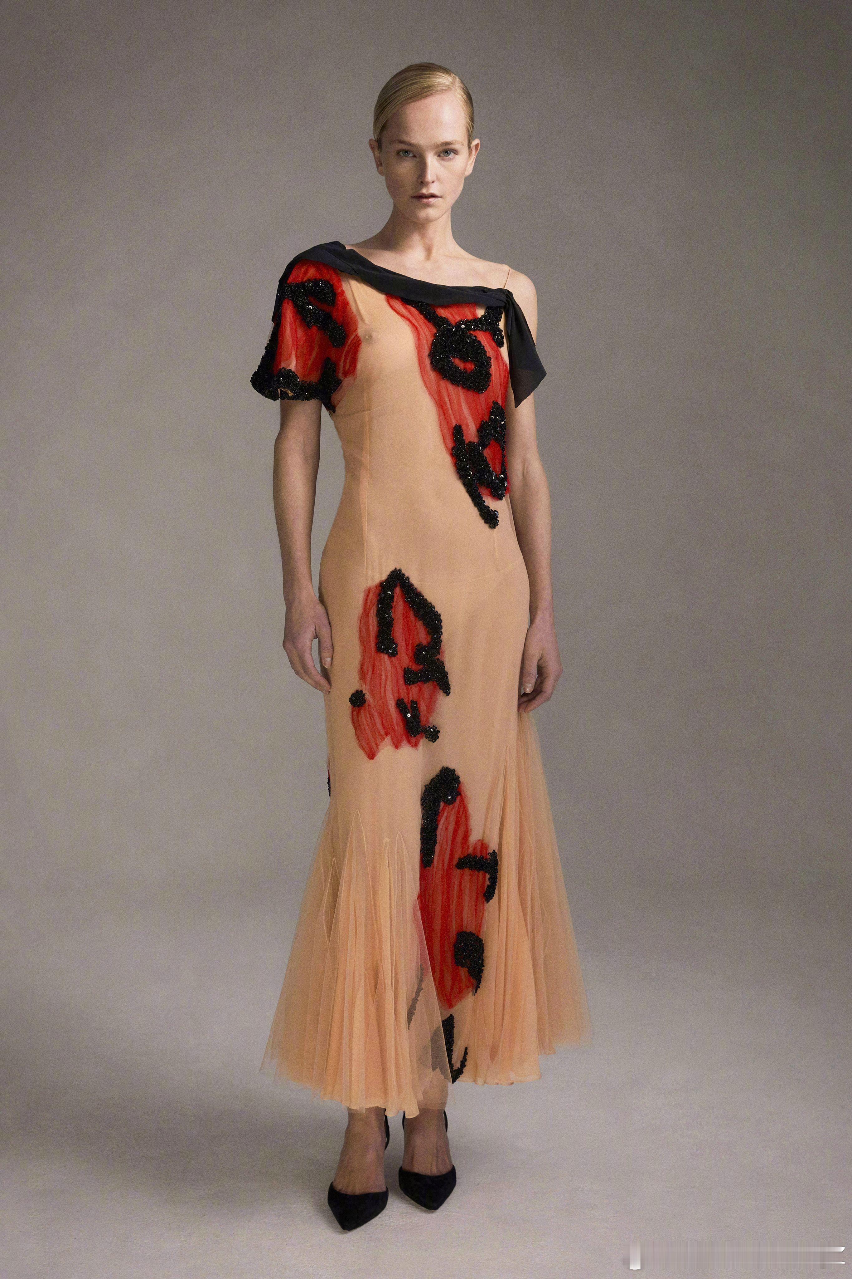 Steve O Smith F/W 2026 | 去年 LVMH 大奖中,Steven O Smith 荣获了 Karl Lagerfeld 奖。这位以手绘画作般笔触呈现精美礼服的设计师,拿到奖金后,新季呈现了更具突破的手笔:黑白主调中首次出现色彩,晕染出红色、桃底粉点与棕色块面。上世纪20年代末的摇曳廓形,在他手中显得更加灵动鲜活,仿佛“活起来的插画”。伦敦时装周