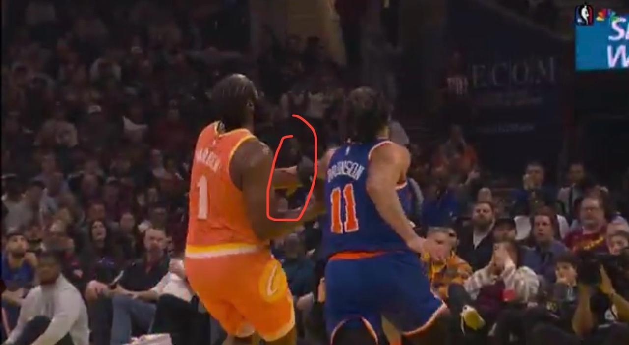 哈登0罚球可以接受,但这个吹罚真的太离谱了! 哈登持球快攻,准备上篮时,布伦森从身后直接下手,结结实实地打在哈登的左手臂上,甚至连球都没碰到,但裁判竟然没有表示,只是吹了出界! 真的很离谱,这么明显的打手犯规,裁判却无动于衷! 慢动作回放可以明显看到,这就是典型的打手犯规,而且下手非常狠! 如果这些都不吹犯规,那哈登0罚球也正常了! 本场比赛,哈登打了32分12秒,这是他职业生涯至今第四次出场32➕分钟0罚球的比赛!太罕见了!