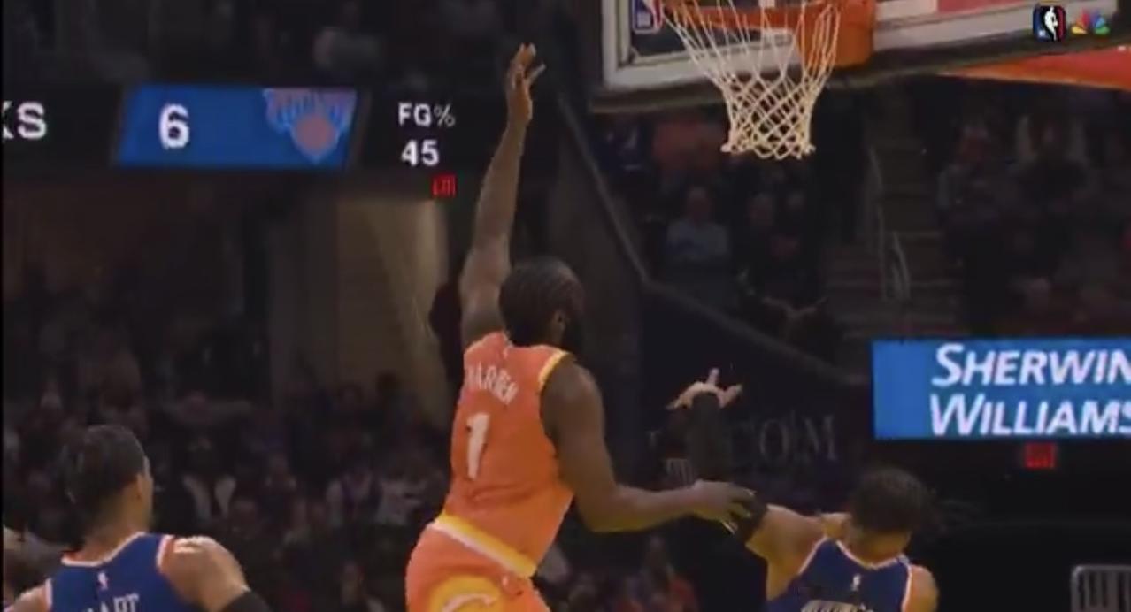 还有一个球哈登上篮整个人被干趴了居然没罚球[拍手]