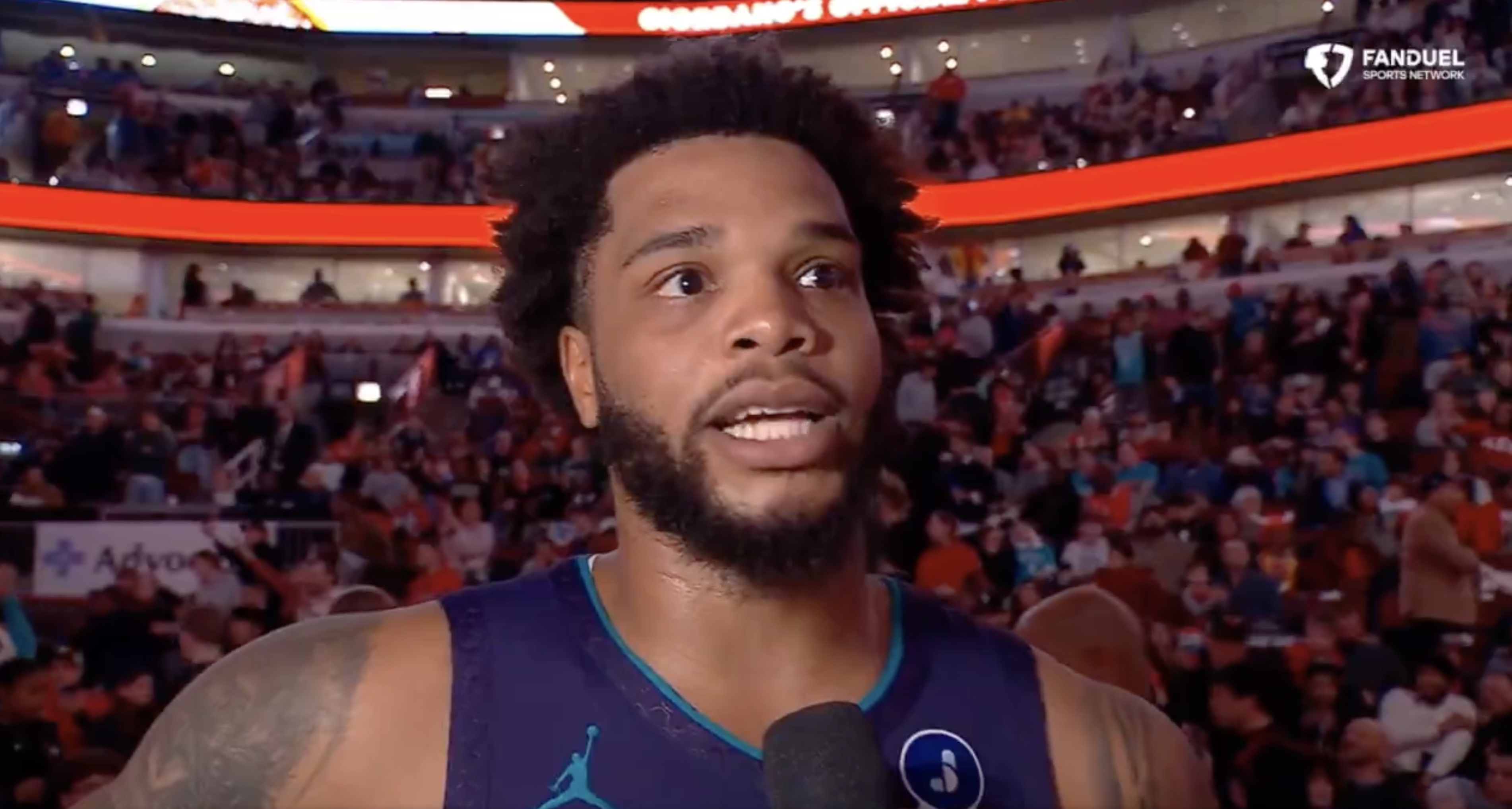 赛后,黄蜂球员迈尔斯-布里奇斯接受媒体采访,谈到了本场比赛球队的表现。
