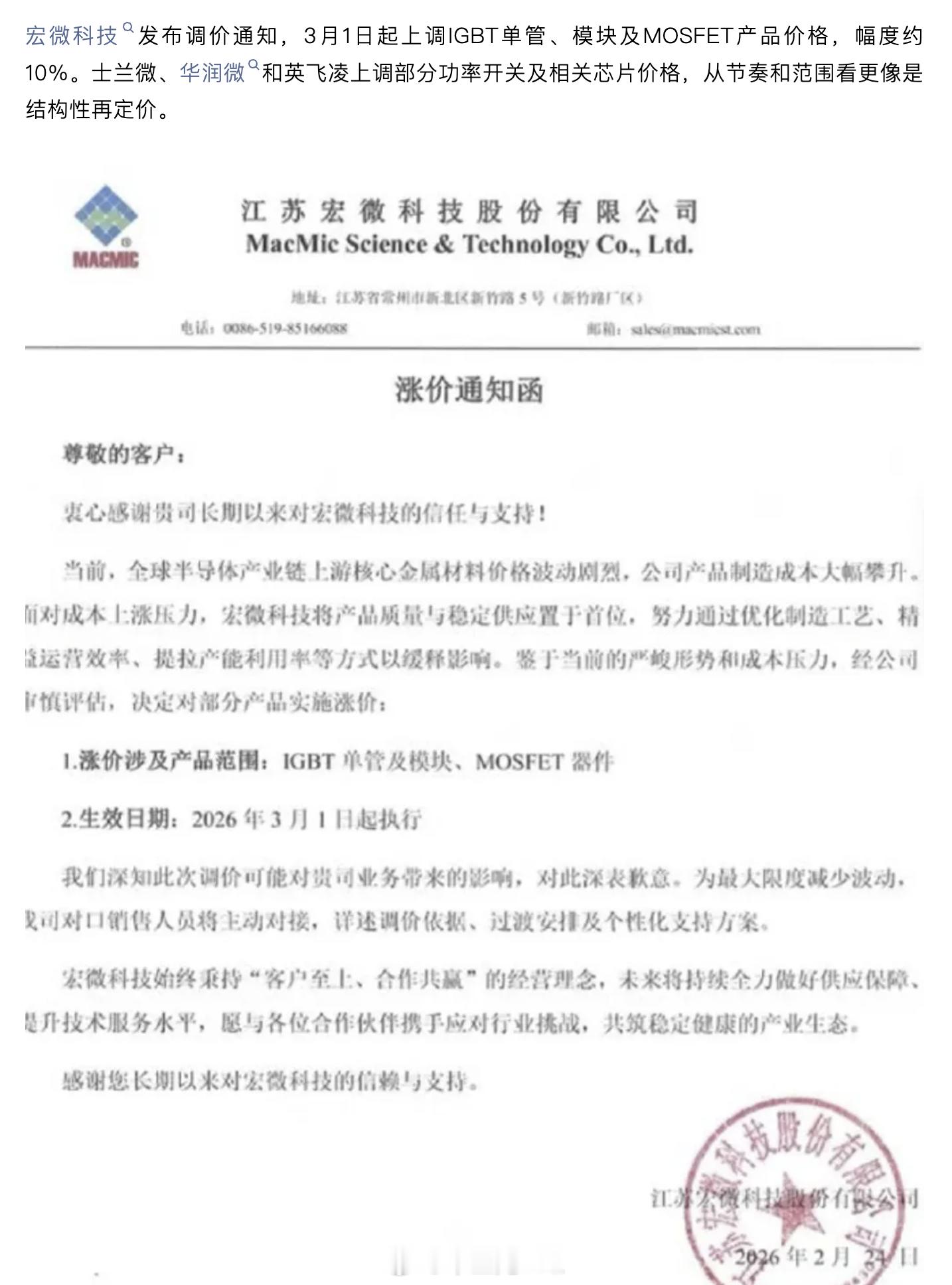 大v聊车功率半导体涨价
