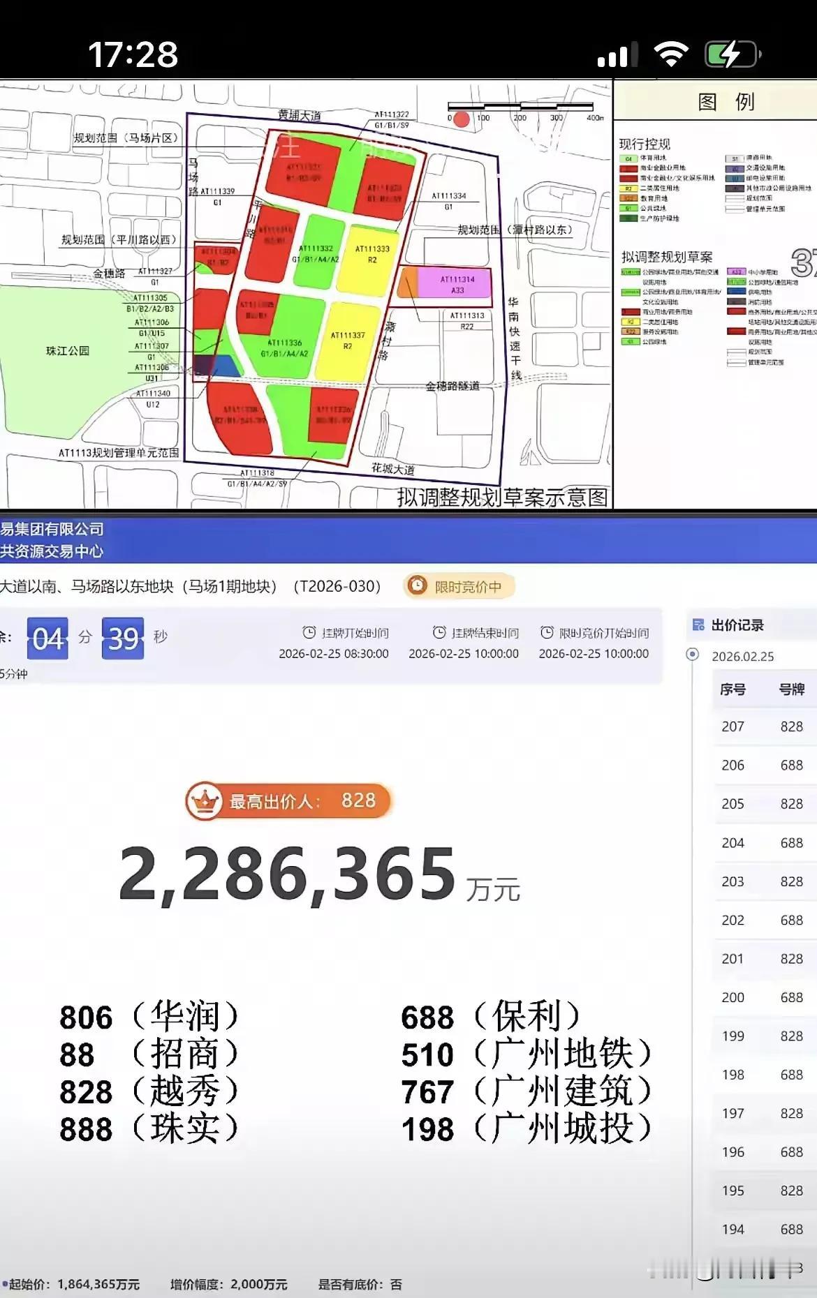 广东广州今天卖地疯狂,9个小时夺地战,6个小时出价,最后越秀236亿击败保利,拿