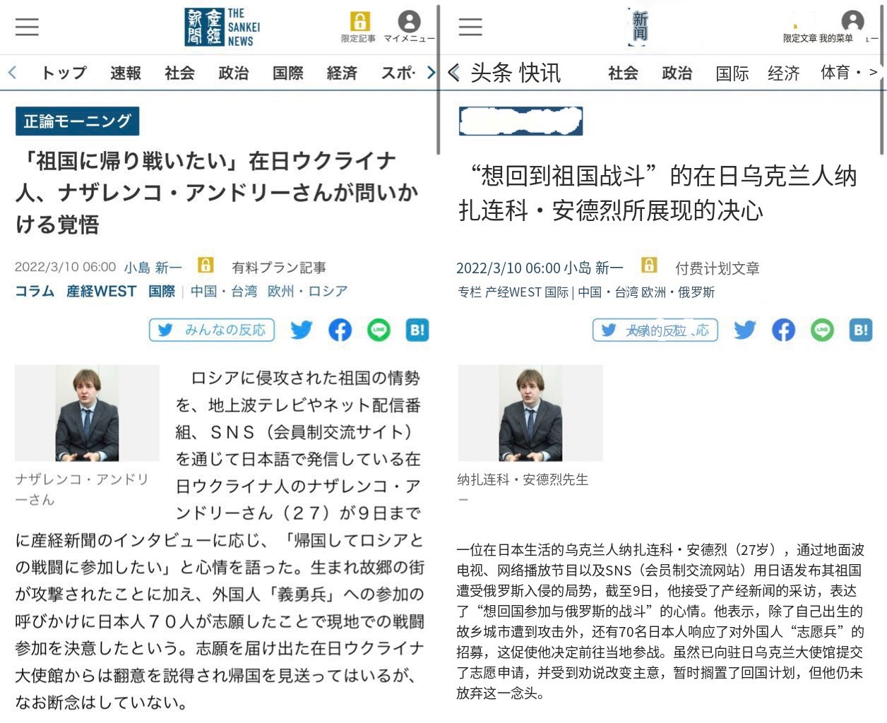 🔻网友分享:一个归化日本的乌克兰网红声称“🐸有事就是日本有事”,申请加入日本自卫队预备役。🔻有日本人问他为“什么不回乌克兰参战保卫同胞”,他反问日本人“你认为同胞是什么?日本人才是我的同胞”。🔻结果被日本网民扒出他2022年就声称要回乌克兰参战,直到现在也没去。🔻真贱啊,贱格。俄乌冲突四周年俄乌冲突海外新鲜事热点现场国际局势