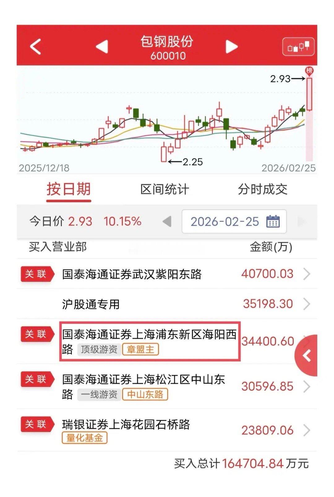 章盟主爆买3.4亿:今天包钢股份盘中涨停。盘后龙虎榜显示,章盟主买入3.4个亿,