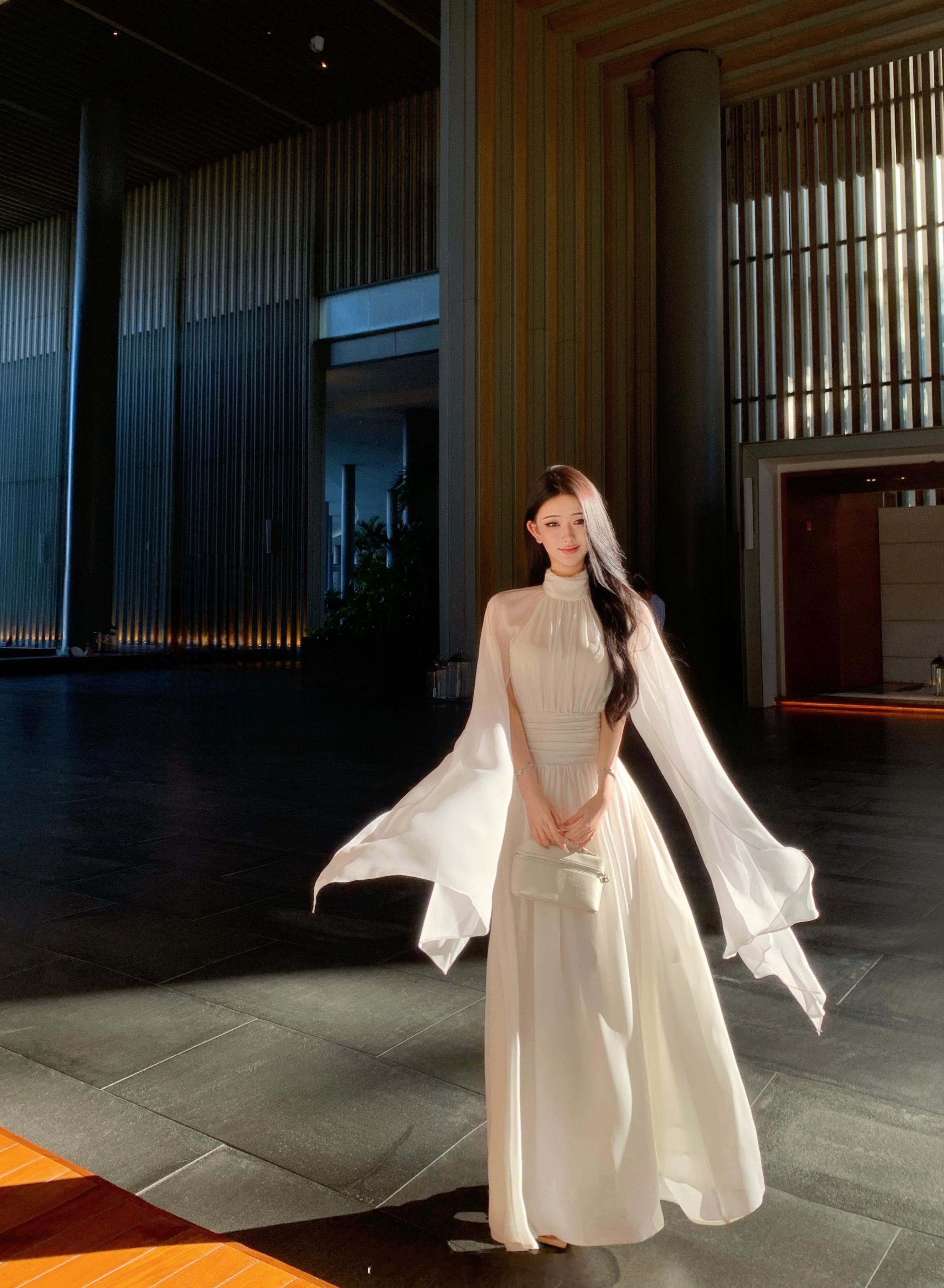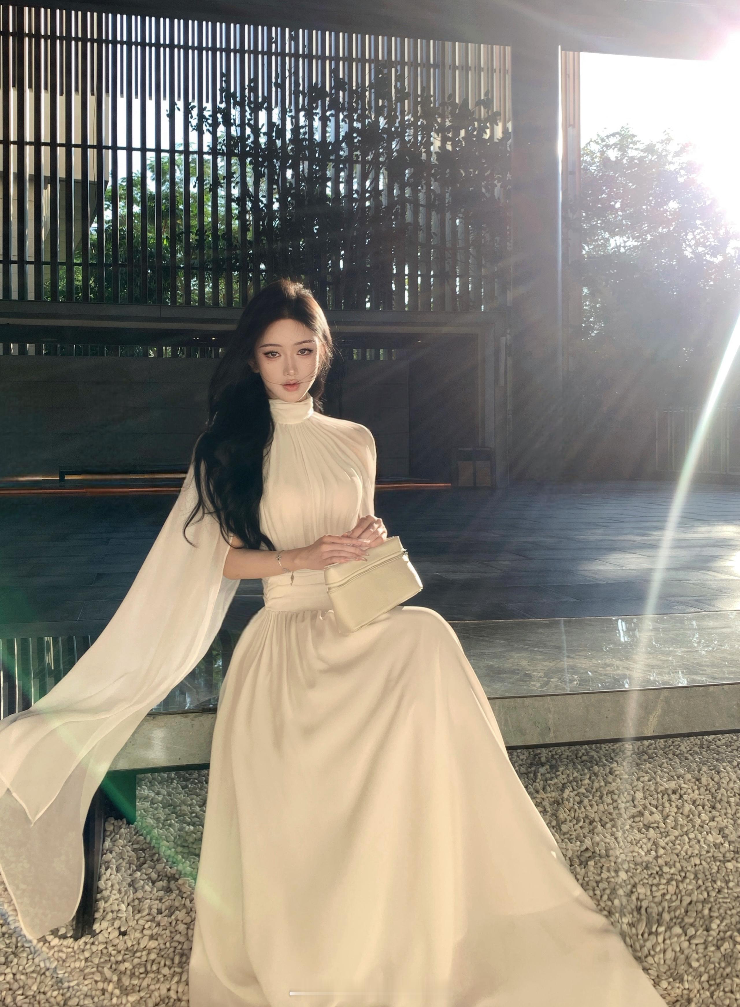 “平静是最好的感知力”🕊️/近几期出了很多类似款 纯色其实一点都不会无聊~连衣服上的褶皱都带着清冷温柔感的裙子上身怎么能不美🥰