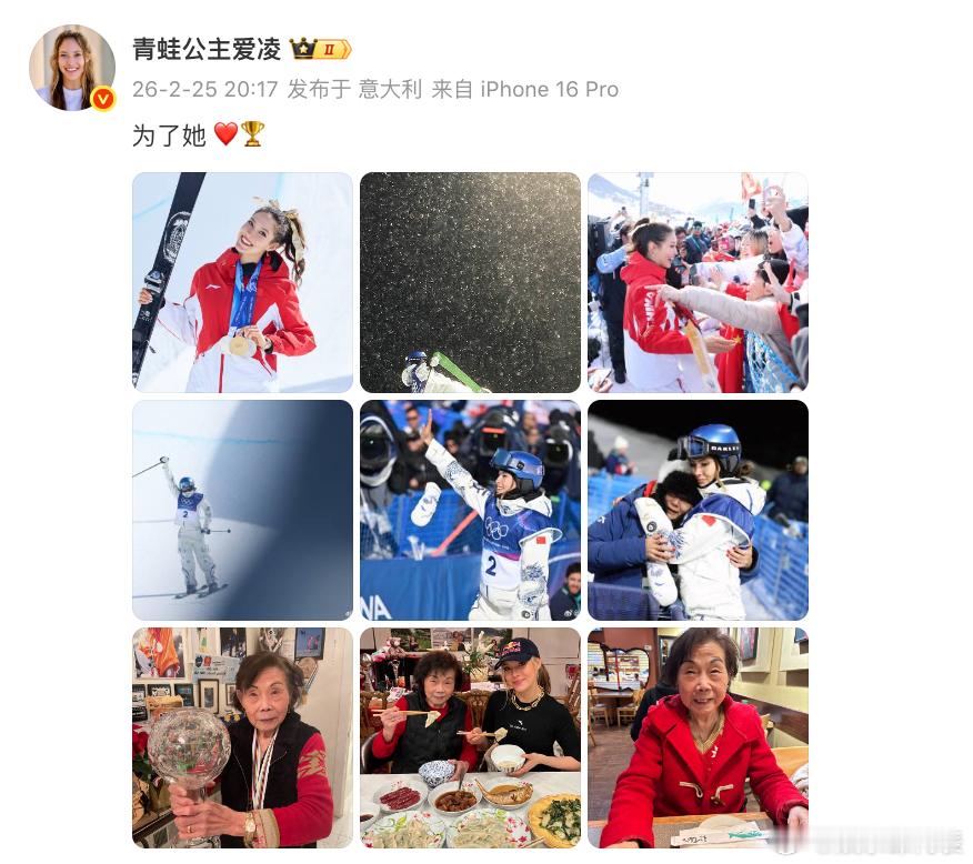 谷爱凌晒照悼念奶奶 谷爱凌晒照悼念奶奶:为了她 ❤️🏆
