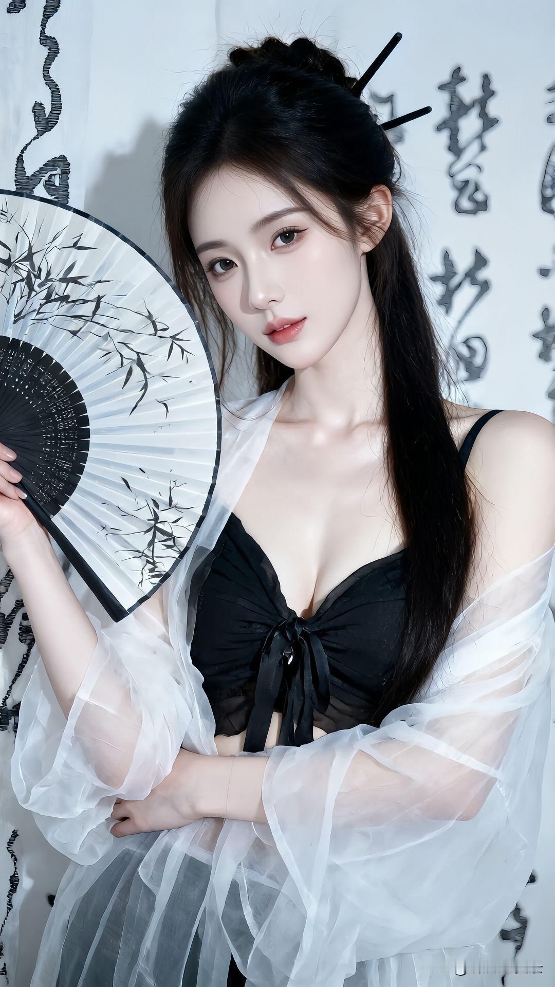 东方韵味,黑发美人手持团扇,古风韵味十足气质美女 高雅气质美女