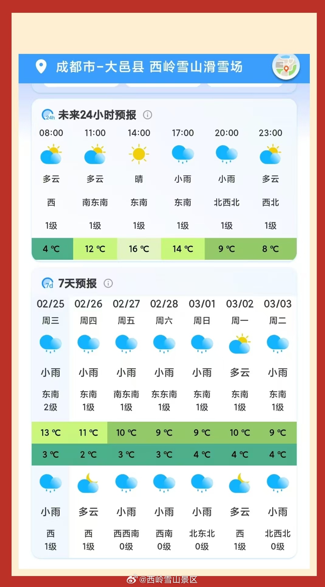西岭雪山2月26日(初十)气象预报#西岭雪山#