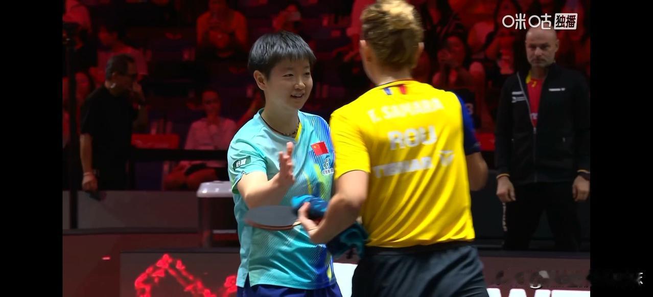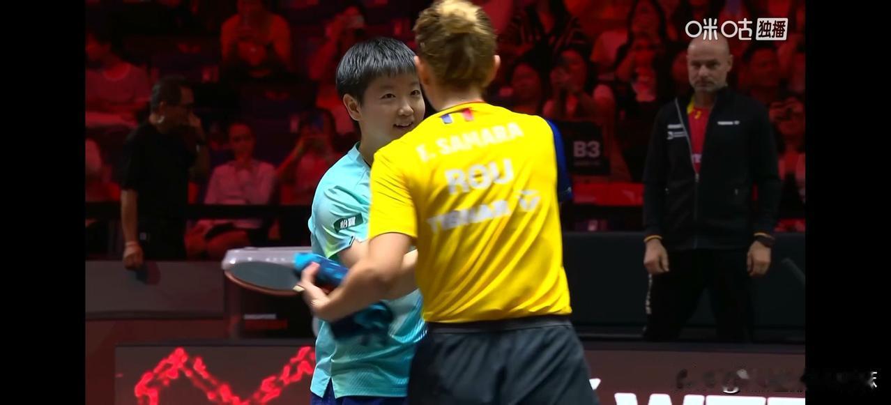 这样超级热心肠的莎莎,别说球迷了,连对手都要爱的不要不要的吧![呲牙] 今晚莎莎和萨马拉这场比赛,不出意外的以3-1的比分结束! 虽然萨马拉发挥的非常好,但是一点也不担心莎莎会拿不下。 前面你一局我一局,第三局的第二个球,裁判判定萨马拉发球高度不符合规定,判罚了一分,萨马拉和裁判理论,然后莎莎用手比划示意萨马拉要不要鹰眼挑战~ 萨马拉就申请鹰眼挑战,发球高度合规,拿回了一分,后面两人都打的很尽兴,莎莎这场球可以说发挥了四成功力,就3-1 拿下比赛。 肉眼可见对手也是心服口服,笑着和莎莎握手,这样明亮的心,足以让所有人折服! 恭喜莎莎晋级下一轮![啤酒]