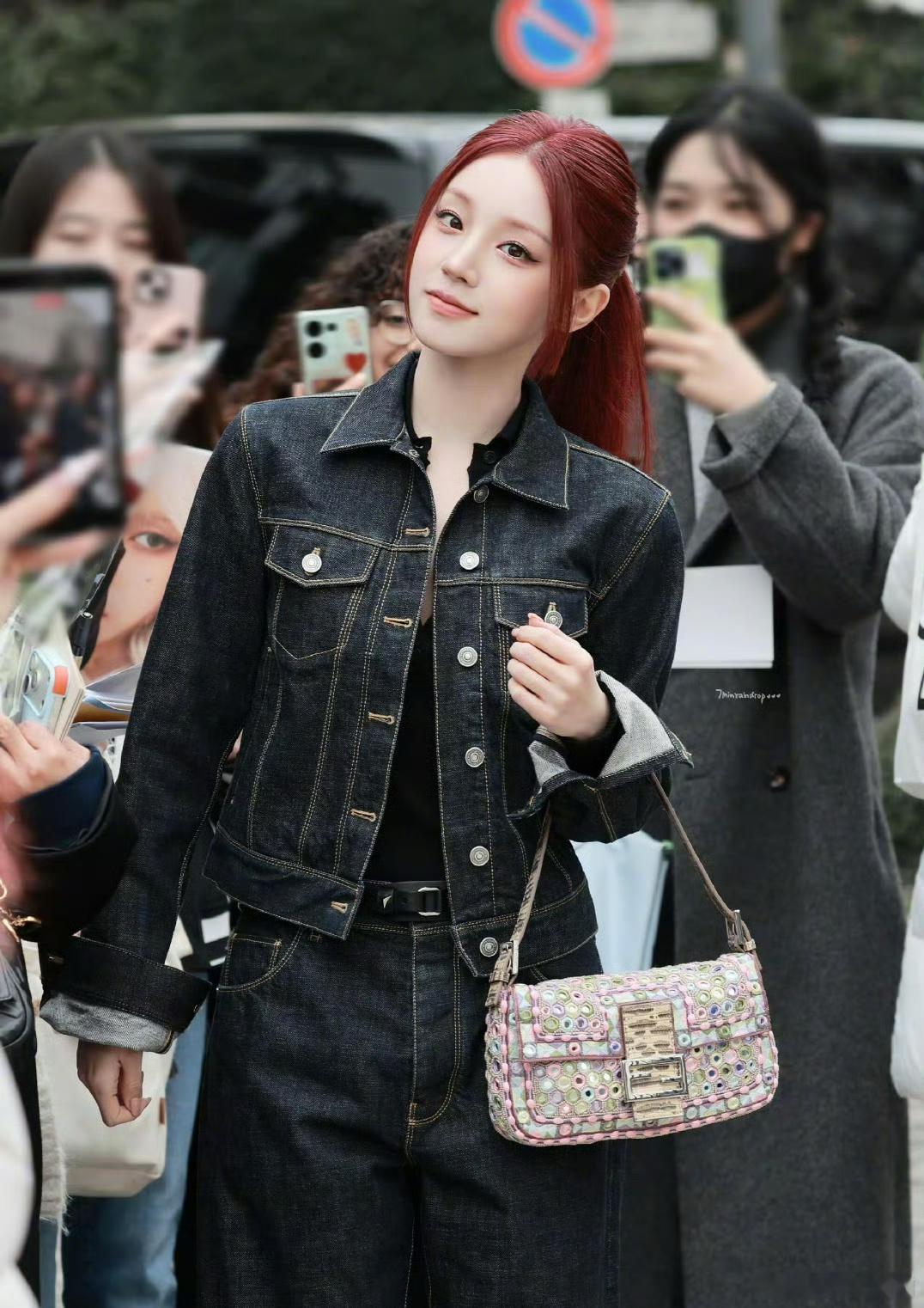 宋雨琦FENDI看秀造型,红发高马尾帅气利落,好美好温柔