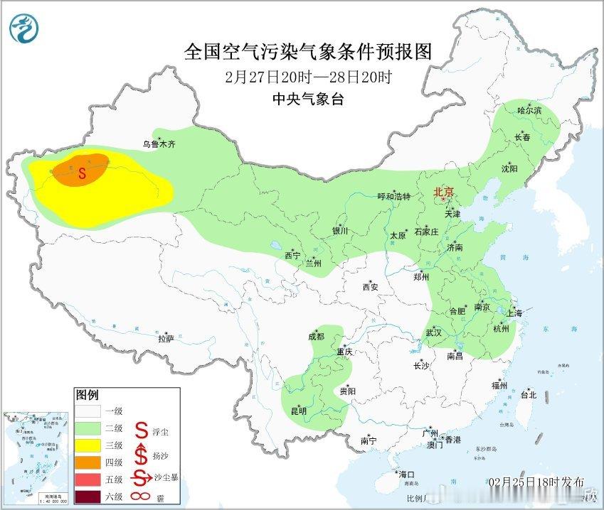 未来随着南风继续北上,之后冷空气到来,明天沙尘结束。另外在新疆塔里木盆地。未来三天,沙尘影响持续。另外,明天早晨,华北到华南地区,地面-低空的湿度大,部分地区可能出现雨雾混杂的情况。