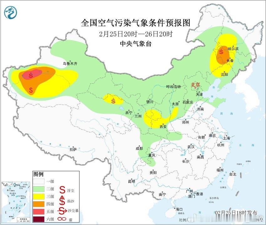 【沙尘和雾】今天下午到晚上,吉林西部一带的沙尘向北输送,吉林松原和白城在17时空气质量一度爆表,PM10浓度超600微克/立方米。今晚哈尔滨也受到沙尘传输的影响,空气质量出现严重污染,PM10浓度达到了458微克/立方米。
