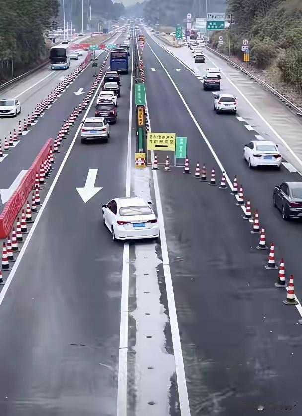 清远这次真的牛了,高速也搞了潮汐车道,在服务区堵塞路段,引导车流走对向车道,减少