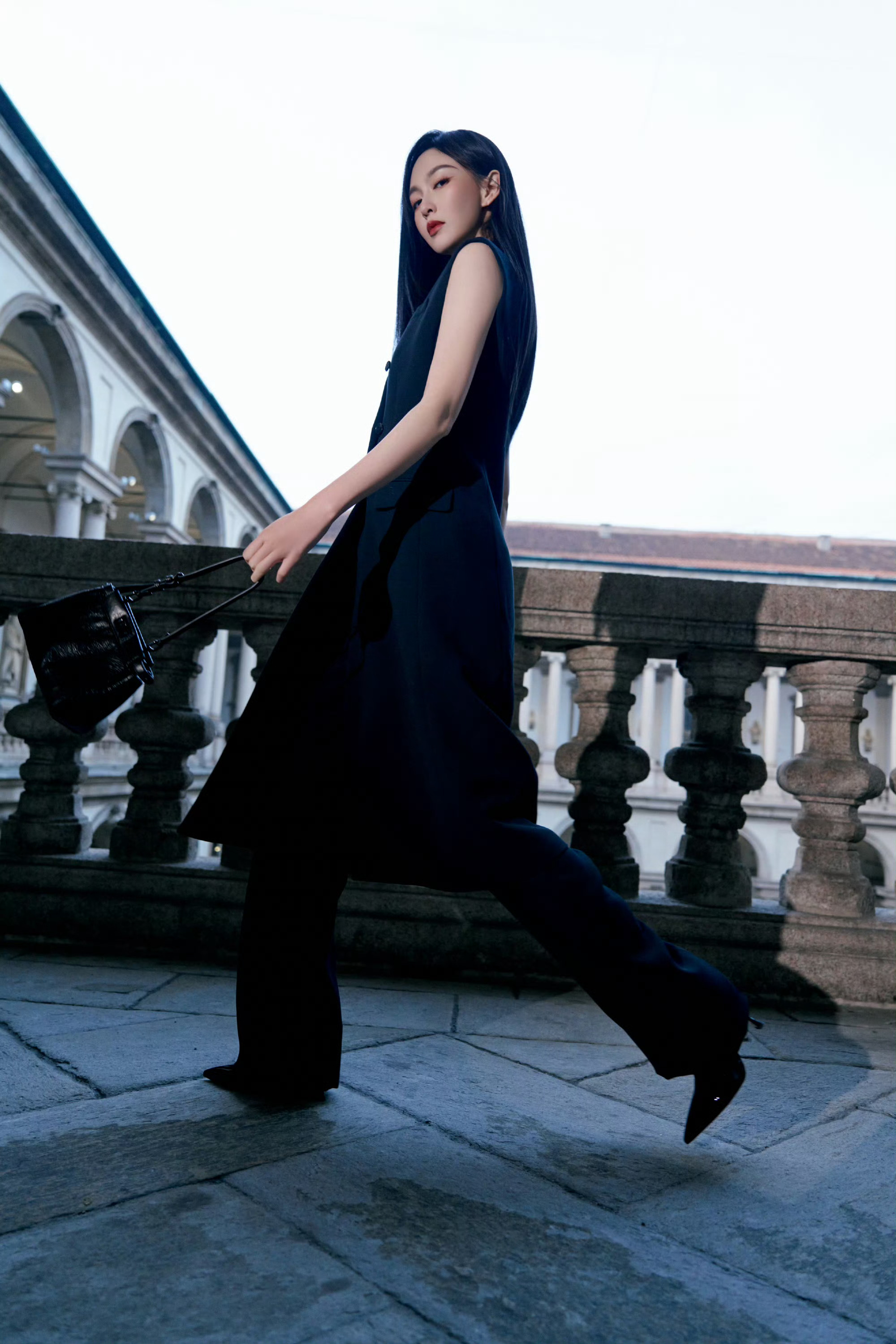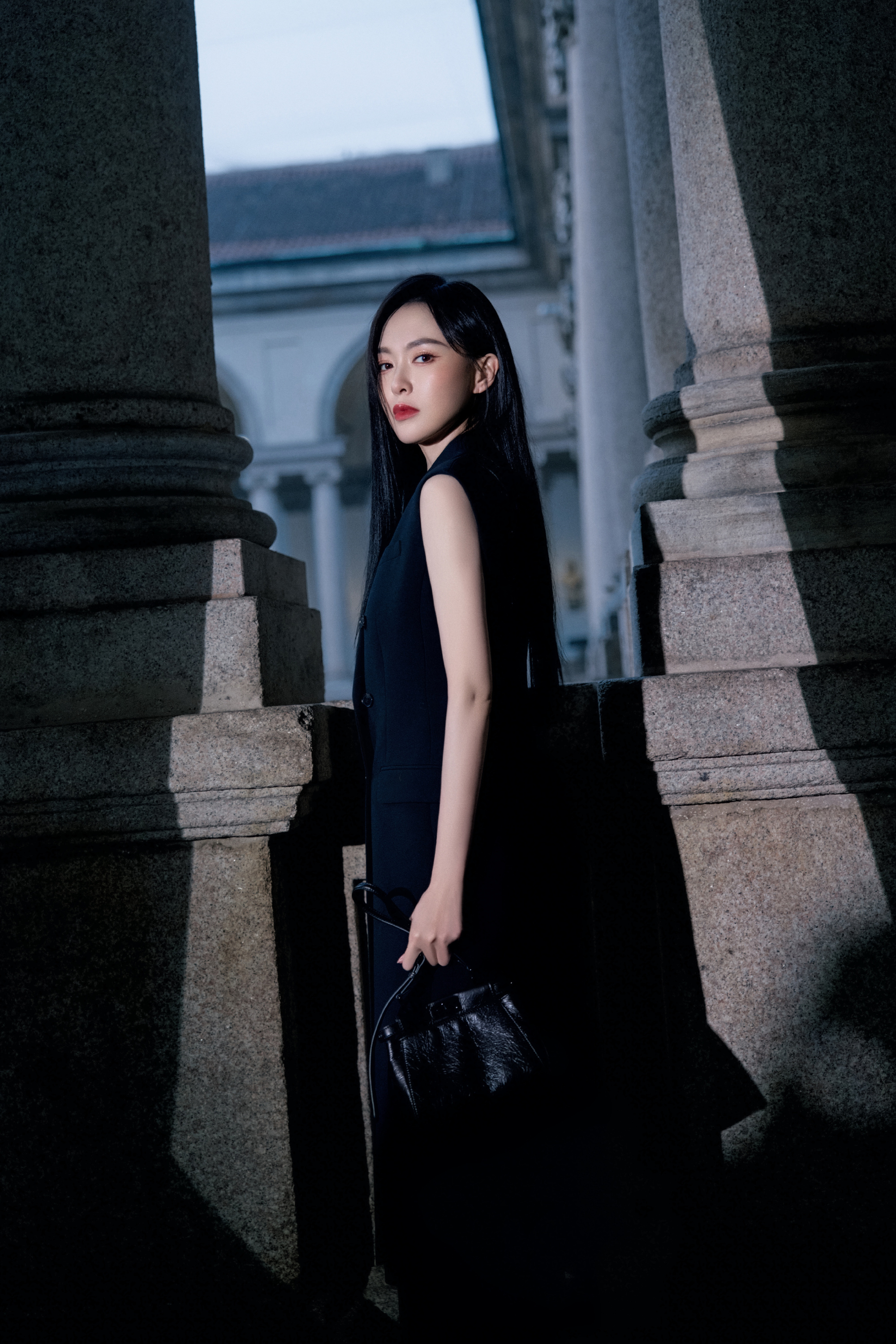 Fendi代言人唐嫣all black造型亮相创意总监Maria Grazia