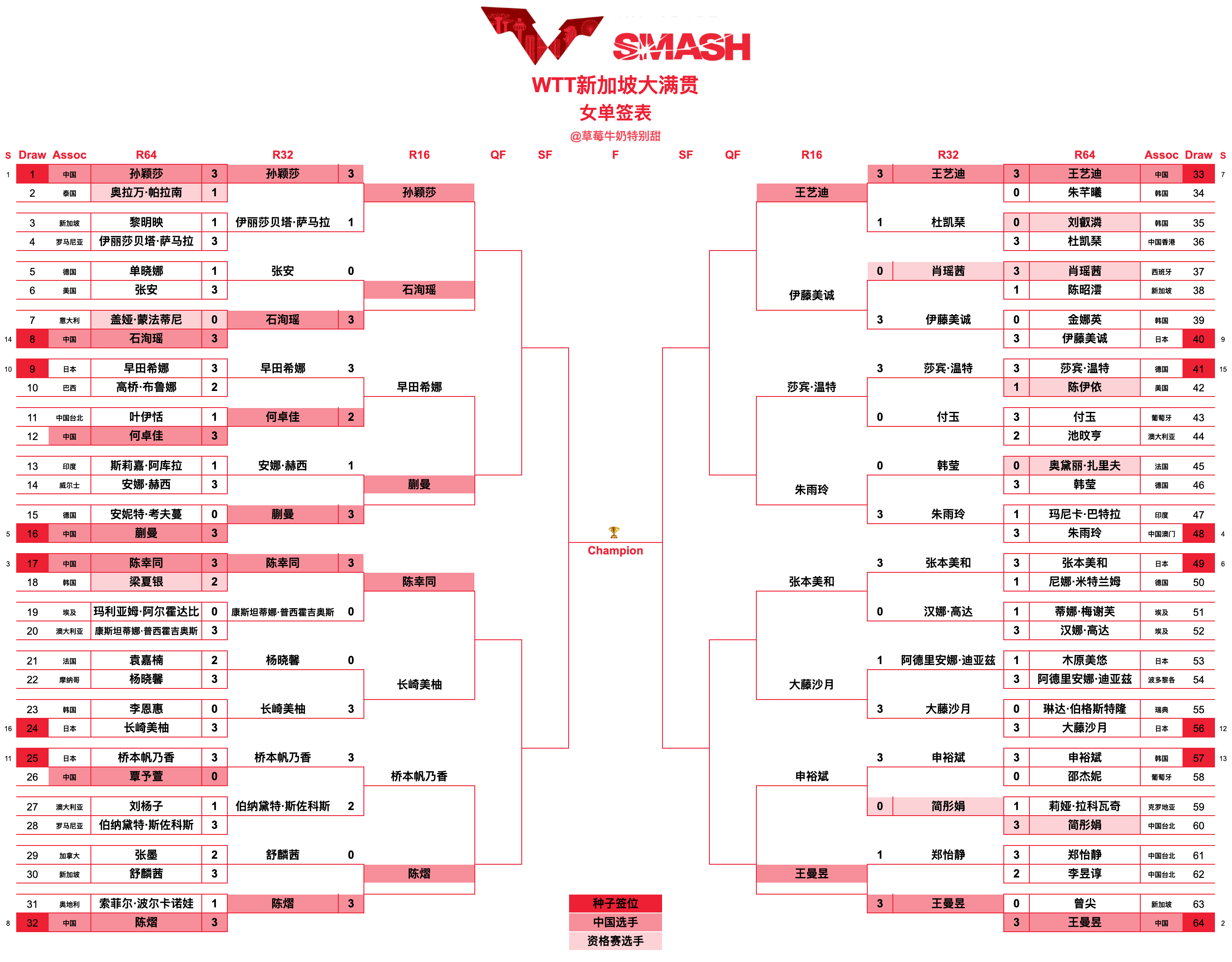 WTT新加坡大满贯丨女单十六强孙颖莎🇨🇳VS石洵瑶🇨🇳早田希娜🇯🇵VS蒯曼🇨🇳陈幸同🇨🇳VS长崎美柚🇯🇵桥本帆乃香🇯🇵VS陈熠🇨🇳王艺迪🇨🇳VS伊藤美诚🇯🇵莎宾·温特🇩🇪VS朱雨玲🇲🇴张本美和🇯🇵VS大藤沙月🇯🇵申裕斌🇰🇷VS王曼昱🇨🇳