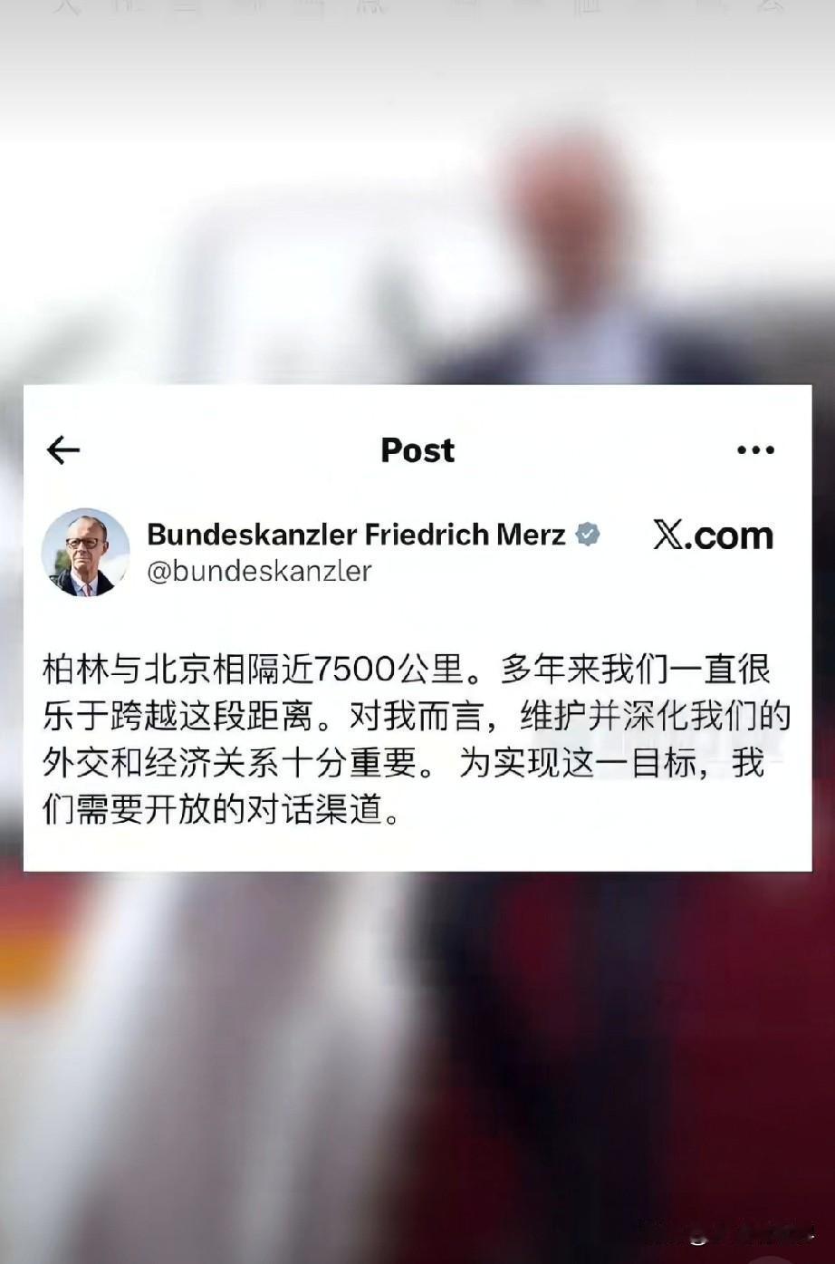 带30家巨头访华!默茨刚抵京就用中文发帖,其实是在给德国经济“找活路”? 默茨刚踏足北京,就用中文发了一条帖子,这事儿不只是外交礼仪那么简单。 用中文发帖,表面上是拉近关系,实则是德国巨头们在华生存的“求救信号”。 想想看,大众、宝马、巴斯夫这些德国跨国巨头,今年在华业绩有多依赖政策风向? 默茨这一嗓子“开放对话”,喊的其实是给自家企业听的:“别慌,我去谈了,路子没堵死。” 现在的国际环境,大家都知道脱钩不现实,对抗成本谁也付不起。 默茨这次访华,团队里带了几十位商界大佬,他用中文发帖子,核心就是想告诉世界:德国不想做棋子,德国想务实赚钱。 这是大国在乱世里的清醒,也是资本对现实的妥协。 从咱们老百姓的角度看,德国这波姿态越务实,咱们的汽车、科技产品价格反而越稳。 不管是外交还是生意,能对话、共赢,才是双赢的硬道理。 你怎么看? 这次默茨访华,能拯救德国车企在华的颓势吗?评论区聊聊你的判断。 国际默茨访华对中德两国有何影响 默茨对华政策