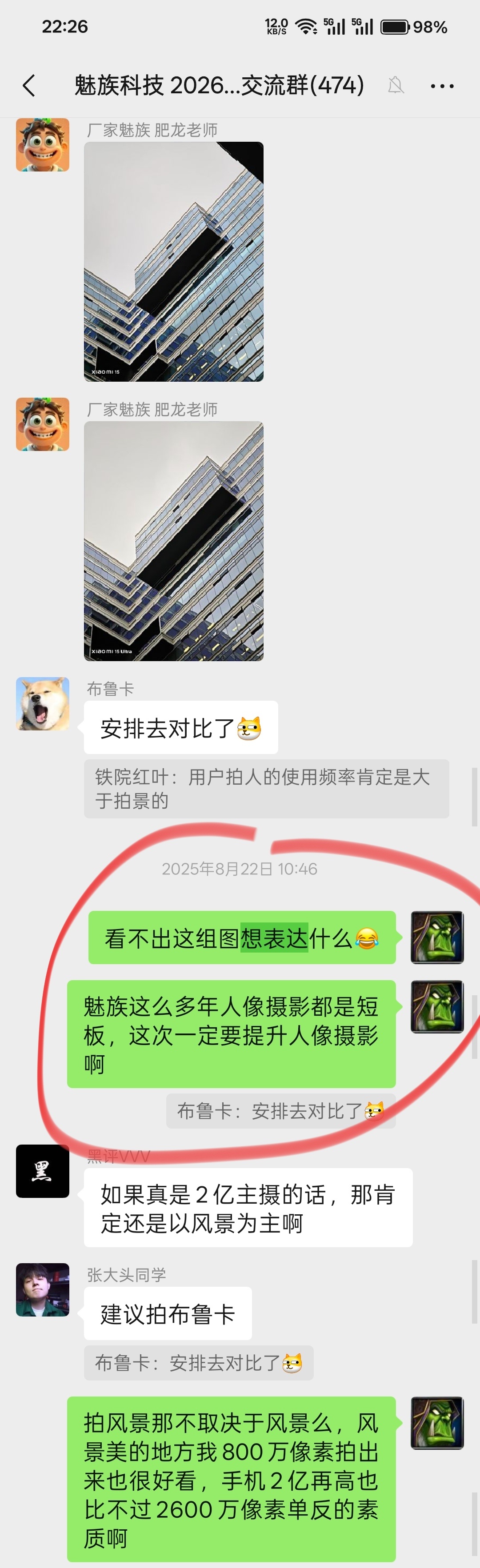 至于魅族为什么会这样没落,我在微博上对魅族相机团队的批评太多次了,私下微信哪怕是魅族的官方媒体群,我这个人的性格就是太直没情商,不吐不快,当着魅族官方媒体老师的面也是直言不讳,当初魅族22官方发了一堆景物对比图我真的不知道官方到底想表达什么?(就这个臭脾气不知道惹了多少金主,有些甚至直接把我从官方群踢出去的,魅族的人真的很大度😂反正没踢我),不止一次吐槽魅族的相机尤其是人像变现太拉胯,可惜魅族已经无力回天,相机自始至终都从来没有让我满意过(不用翻我测评魅族手机的文章或者视频,说白了就跟你相亲你不会暴露你缺点一个吊样,就跟你对媒体评价你公司一样,这玩意不杠,懂的都懂)。