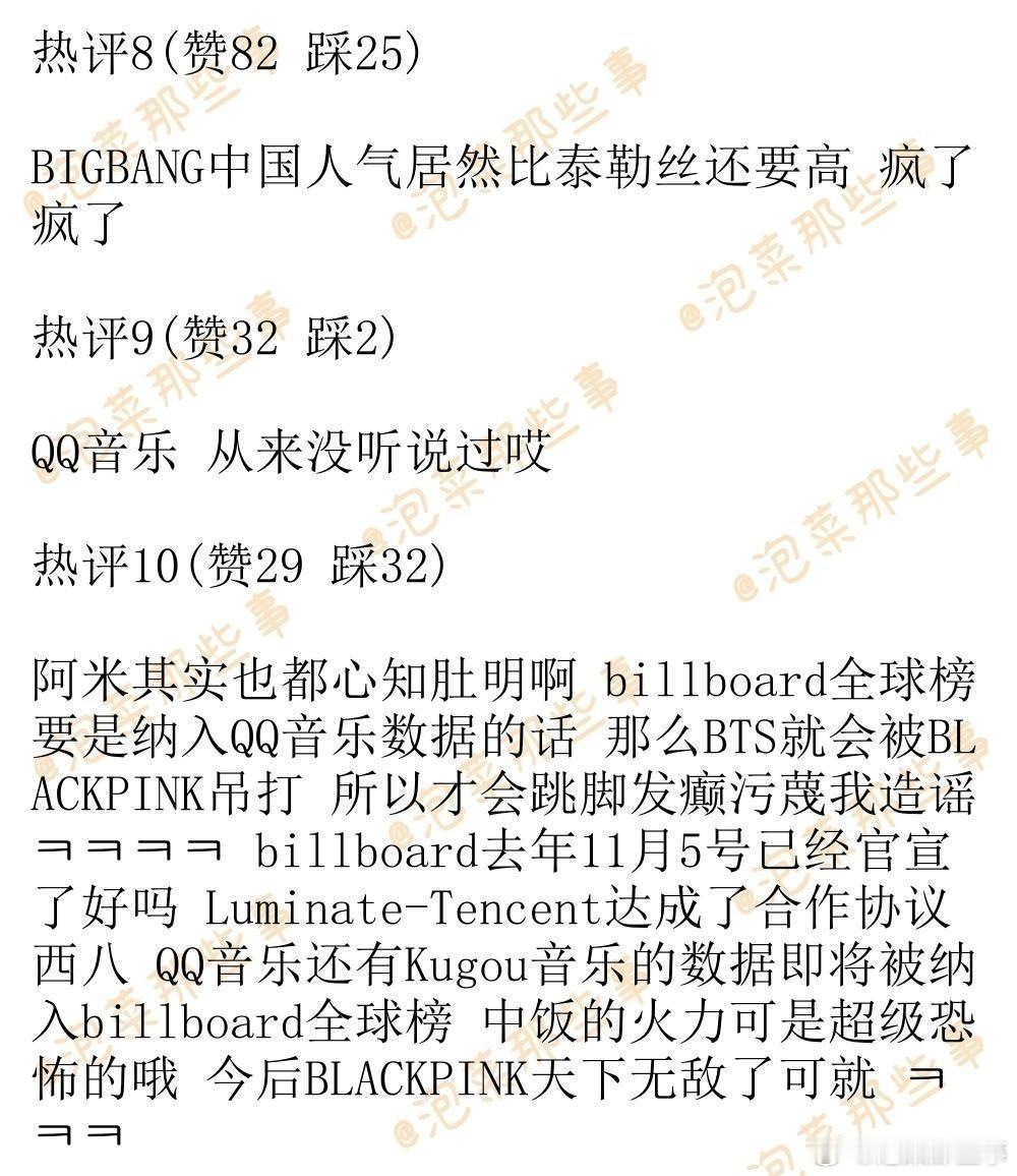 🔥韩网热帖评论翻译🔥中国QQ音乐粉丝数最多的海外艺人Top20+KPOP艺人Top20cr.pann