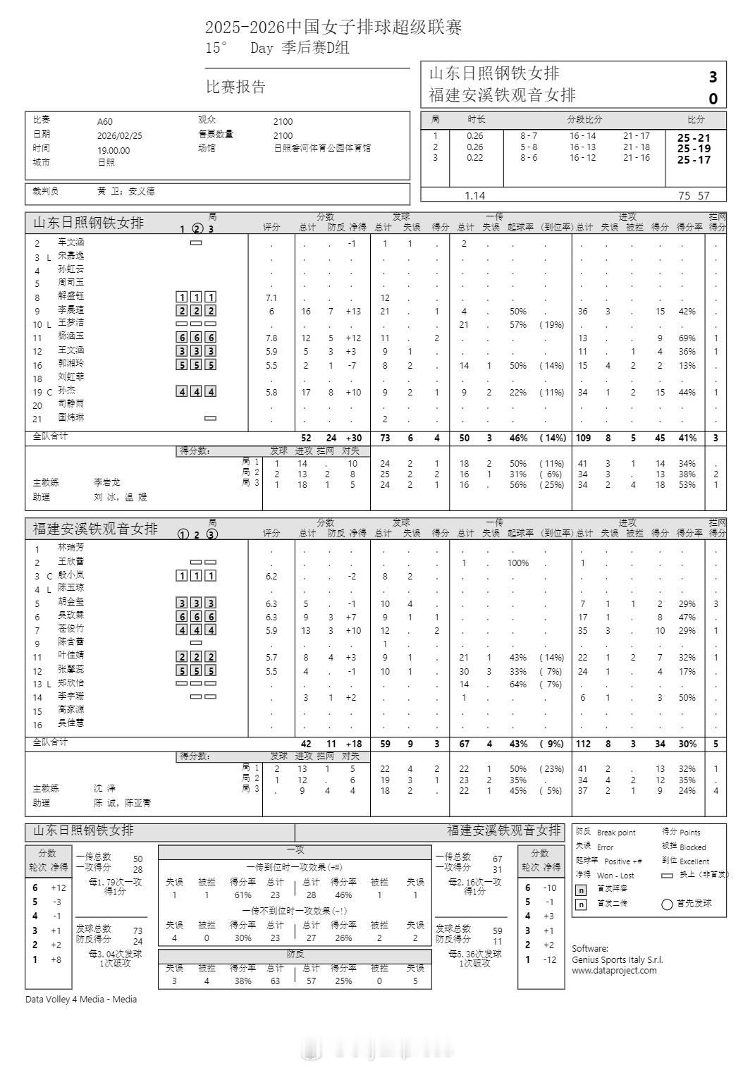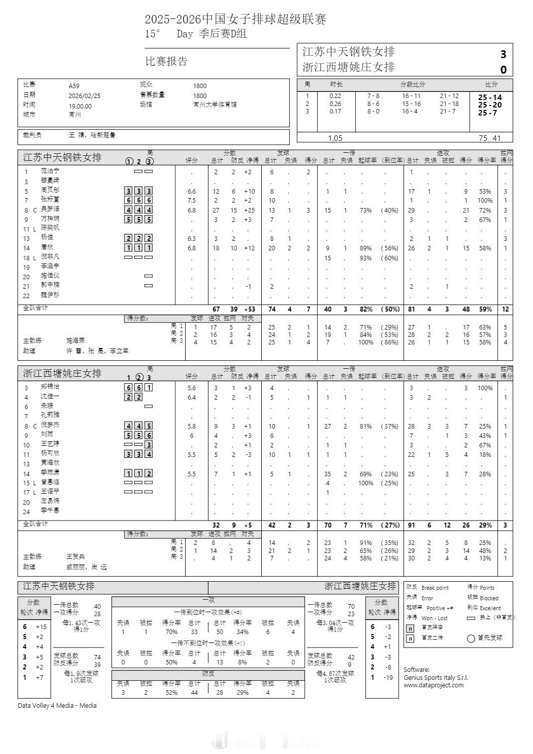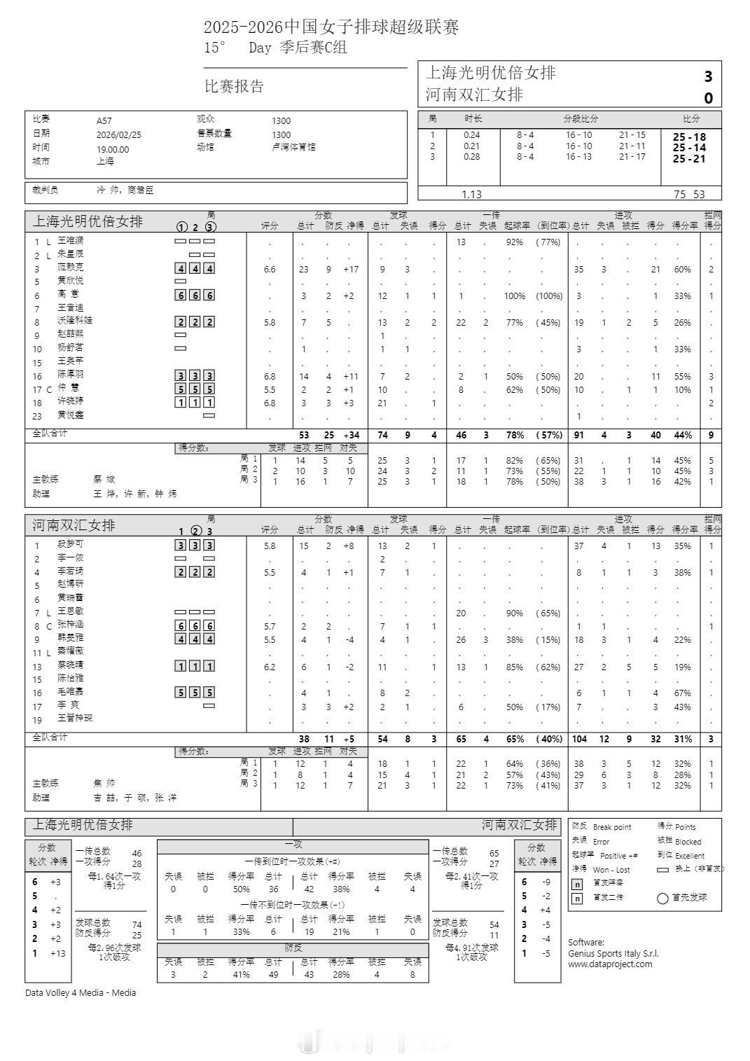 排超联赛 2月25日,女排联赛季后赛技术统计。