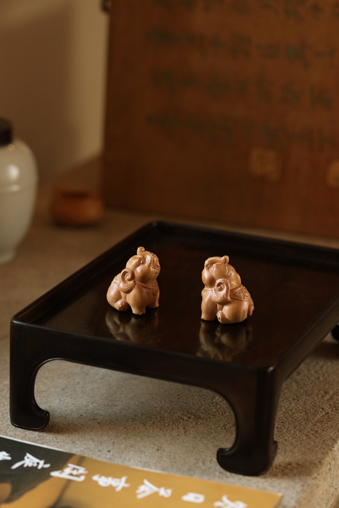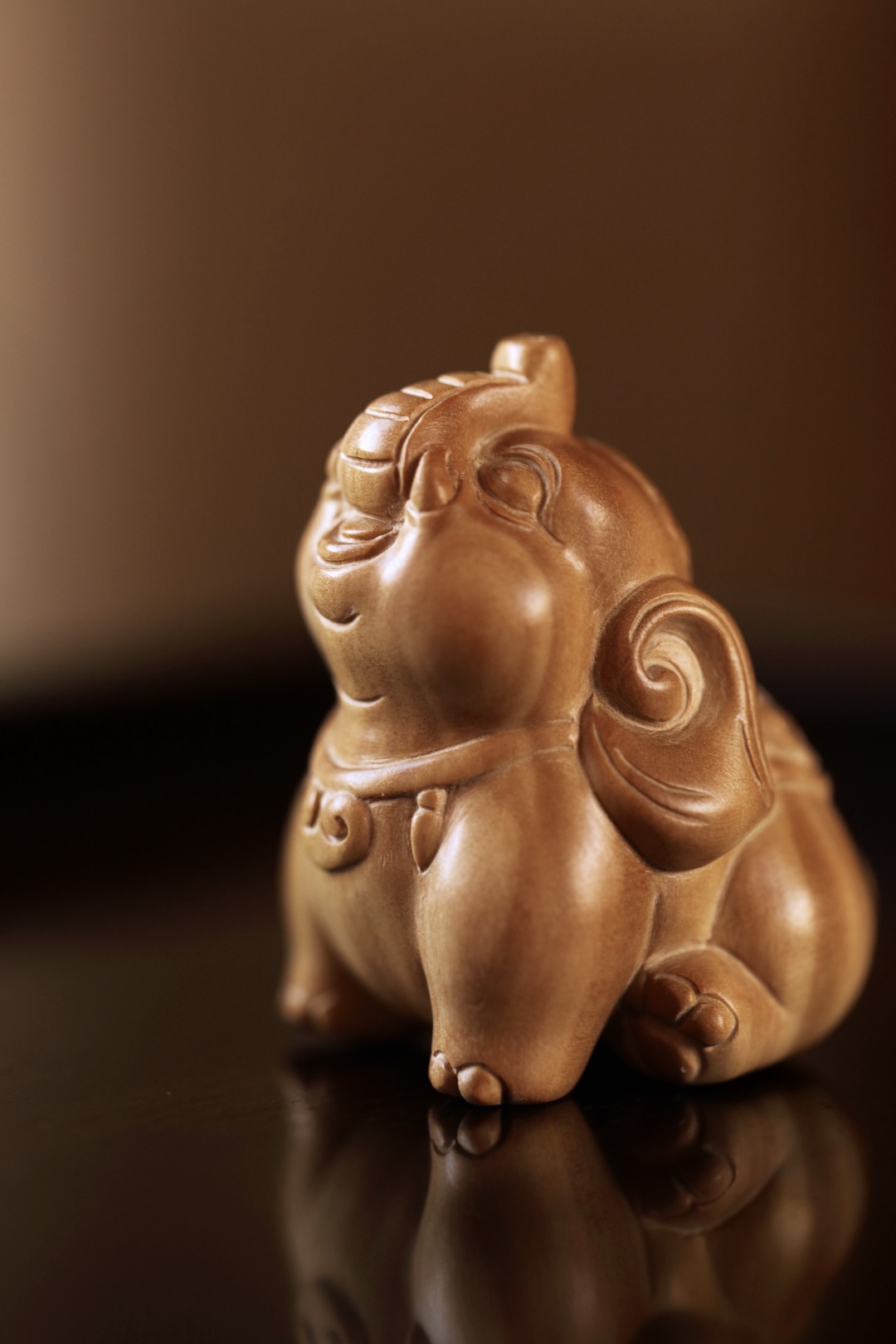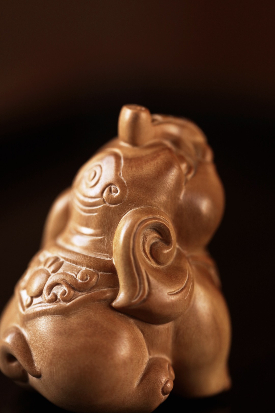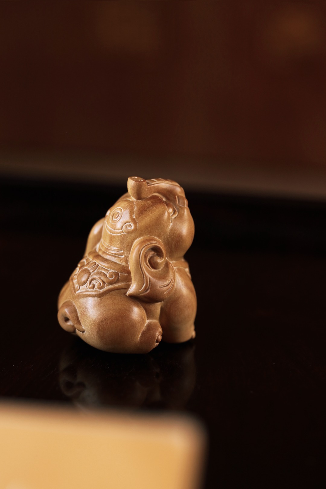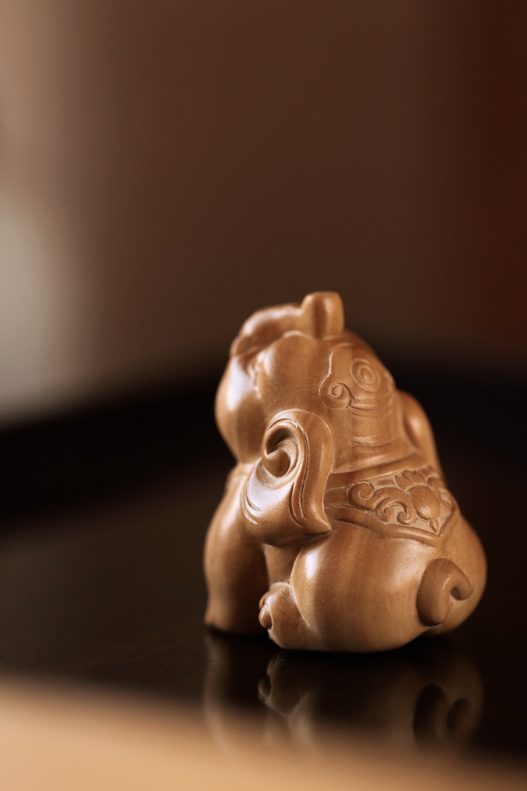 雕工圆润饱满的小吉象,手工雕刻,料质细腻;置之桌案,增添雅趣。