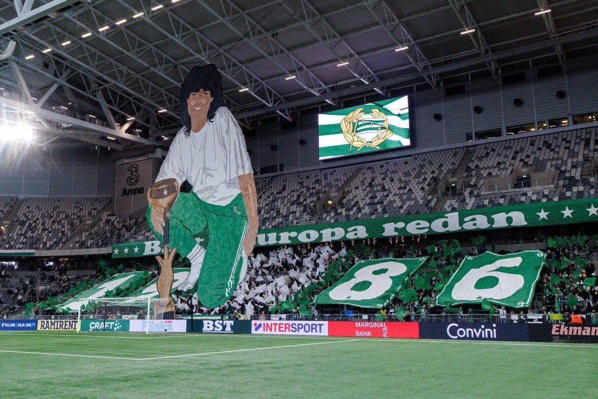 哈马尔比球迷致敬女足1986年捧起的欧洲冠军——芒通锦标赛冠军,这项赛事并不被欧足联承认为正式的欧战赛事。当时哈马尔比女足是欧洲的劲旅,曾担任中国女足助教,后来率美国女足连夺奥运冠军的皮娅,当时正是哈马尔比女足的成员。
