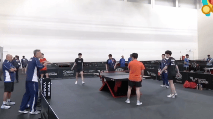 老大们都到齐了,看看男双是怎么回事哈。 2.25日的训练场,和昨天一样,各位老大都亲自指导, 总教练秦指,副总肖指,亲自在场边指导, 男主王皓换上战袍亲自陪练, 直板薛飞在旁边候着, 王建军教练在旁边捡球。 这配置,所有人都围着林诗栋和黄友政, 这资源,顶配了, 男双这一次势在必得,也看得出来洛奥的男双,我们也必须要争一争, 从每一场比赛开始的感觉。