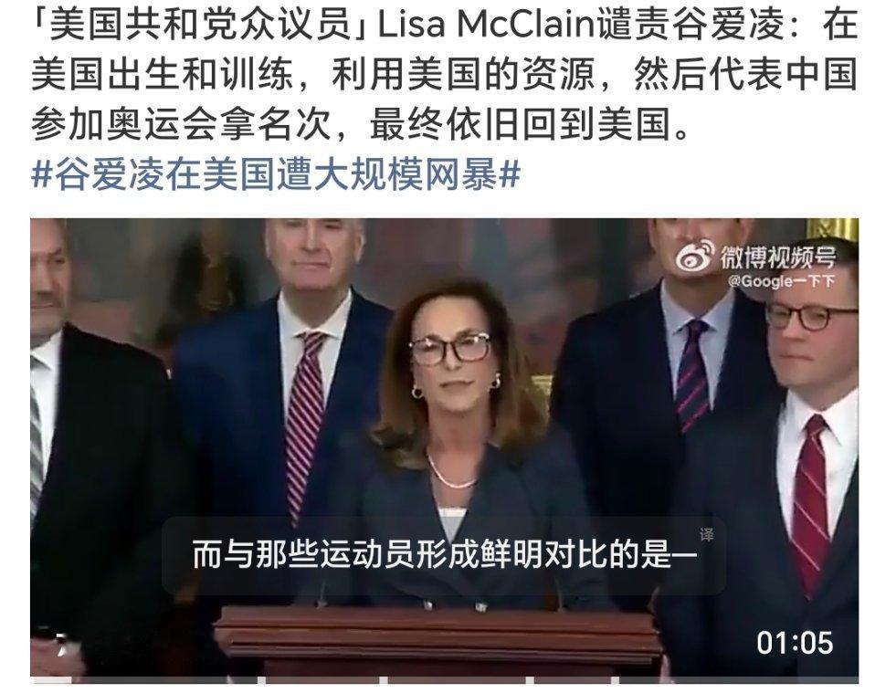 谷爱凌摊上大麻烦了,密歇根州共和党众议员丽莎·麦克莱恩(LisaMcClain