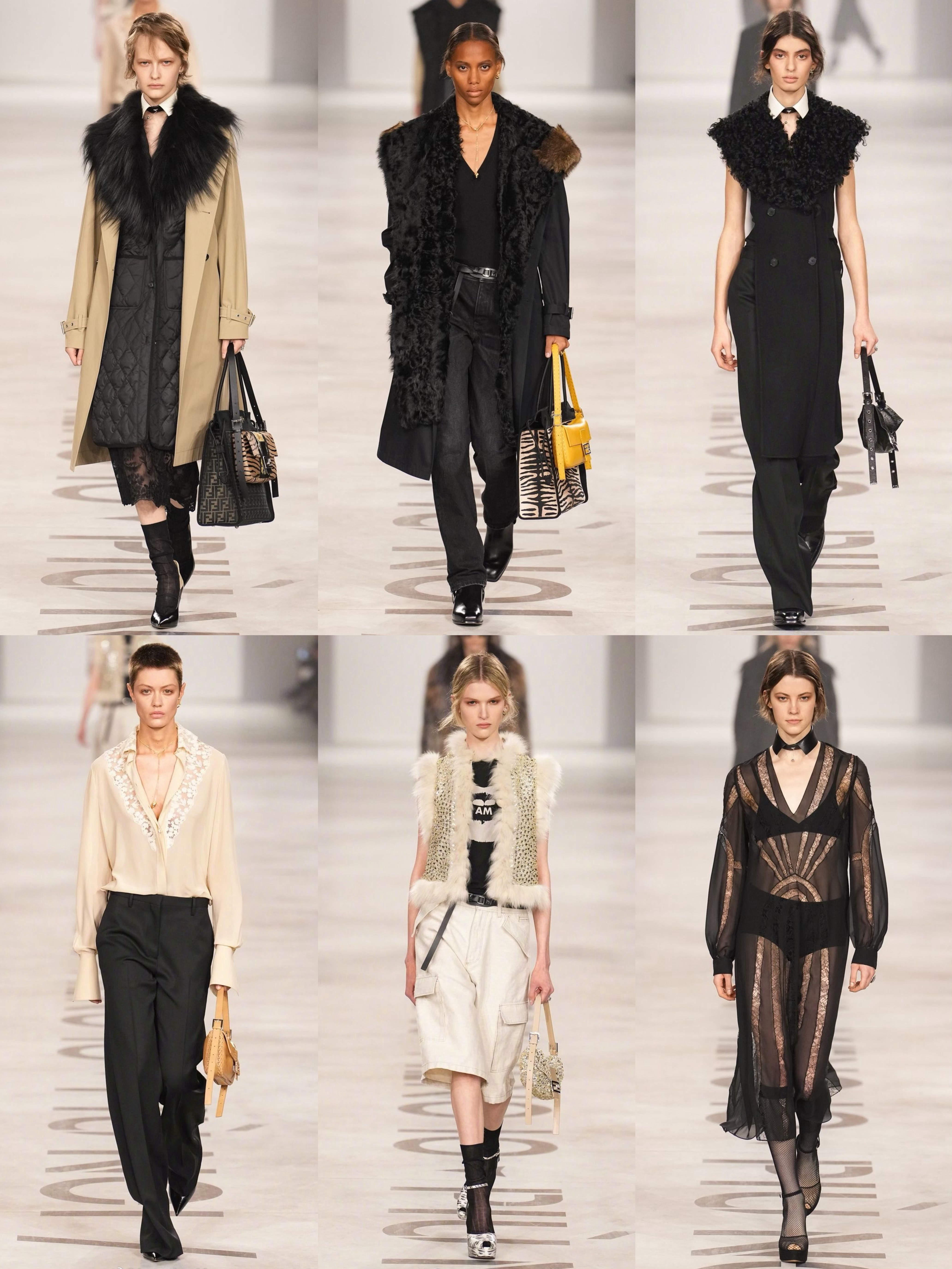 FENDI 首席创意官Maria Grazia Chiuri的首秀,从预告片的高跟鞋和包袋,到品牌代言人唐嫣、品牌大使宋雨琦的看秀造型,两人都身着全新的FENDI 2026秋冬系列亮相,利落摩登的现代女性形象,勾勒出新FENDI女郎的魅力气场~ Maria回归FENDI首秀